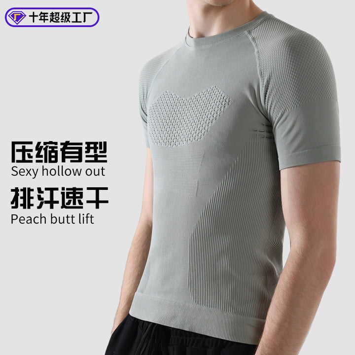 Men's Fitness Clothing Sports Yoga Riding Short Sleeve Breathable Quick Drying Compression Fu...