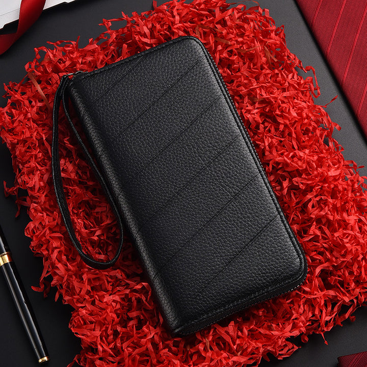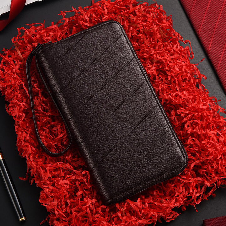 Men's long zipper wallet, grab bag, men's mobile phone wallet, embossed multi-card position, men's long wallet.