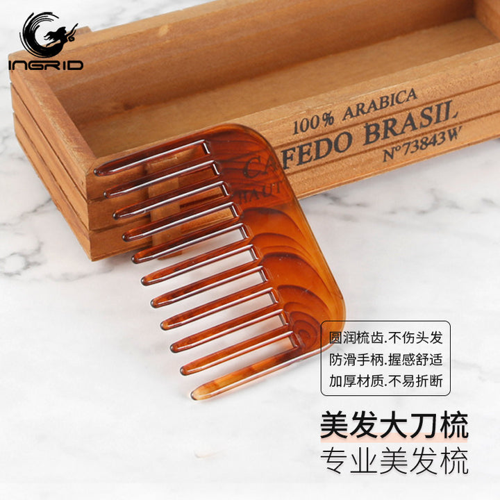 Men's Vintage Oil Hair Comb Modeling Big Knife Comb Hair Salon Oil Head Big Back Head Wide Tooth Comb Amber Round Hair Plug Comb