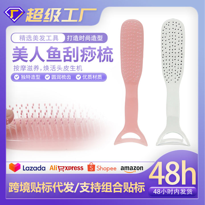 Mermaid scraping comb hairstyle comb nylon comb teeth non-slip and anti-static hair comb dual-purpose scraping massage hair care comb