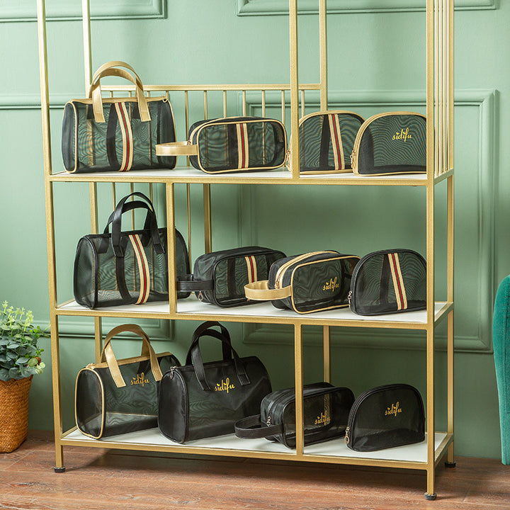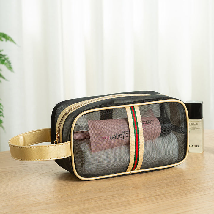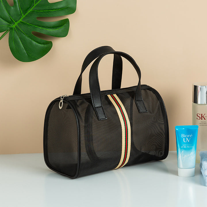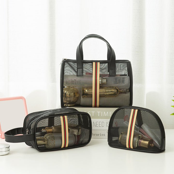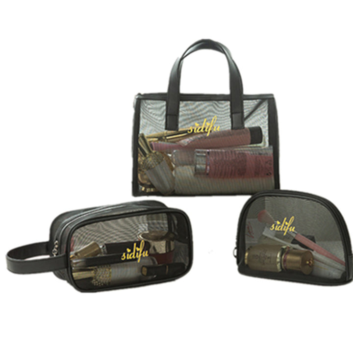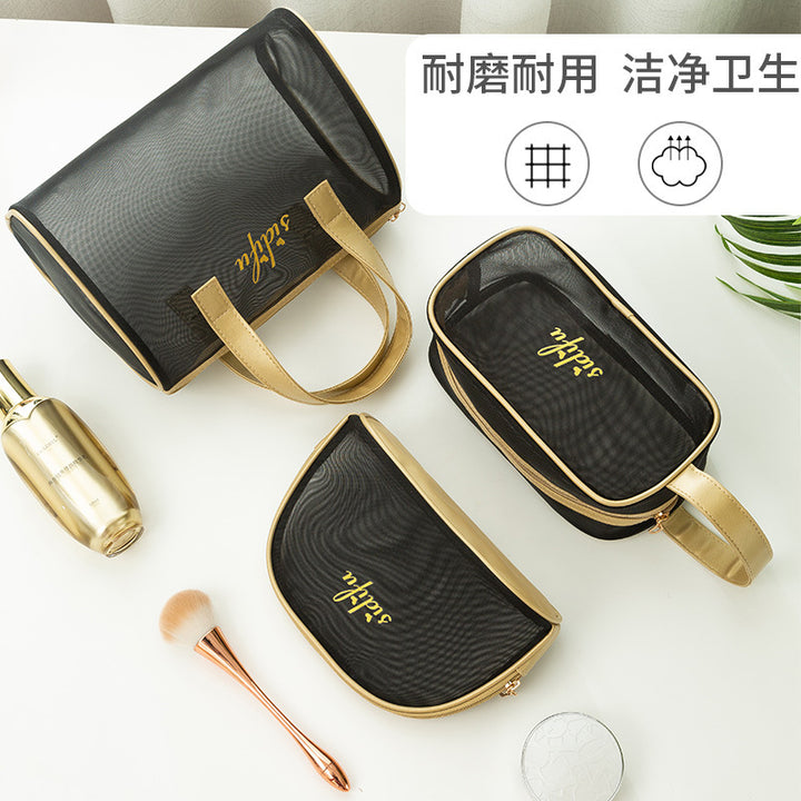 Mesh cosmetic bag, wash storage bag, three-piece set, large-capacity portable bath bag, beach bag, travel swimming bag.