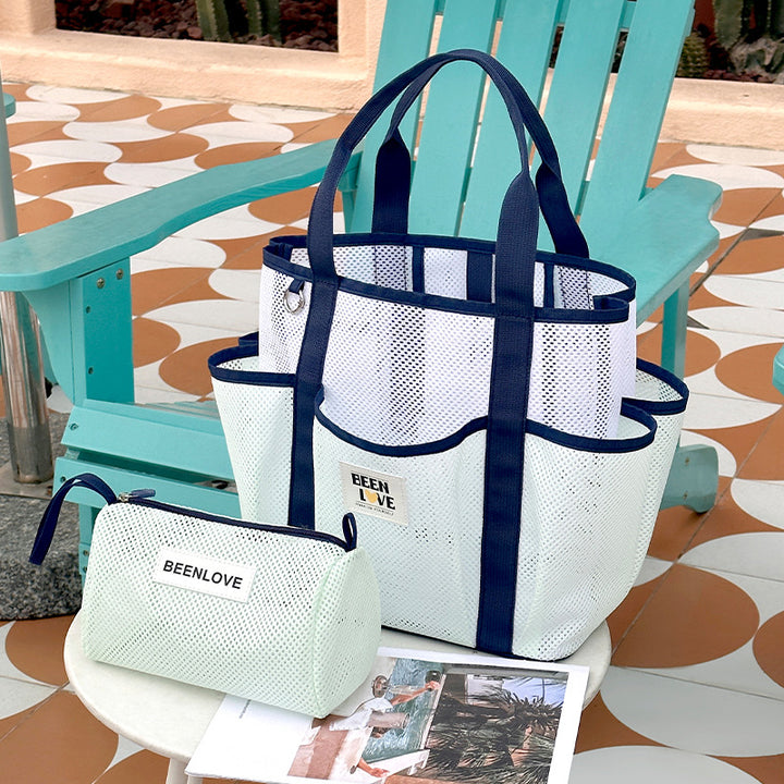 Mesh swimming bag large capacity bath fitness wash swimsuit storage bag hollow mesh beach travel bag