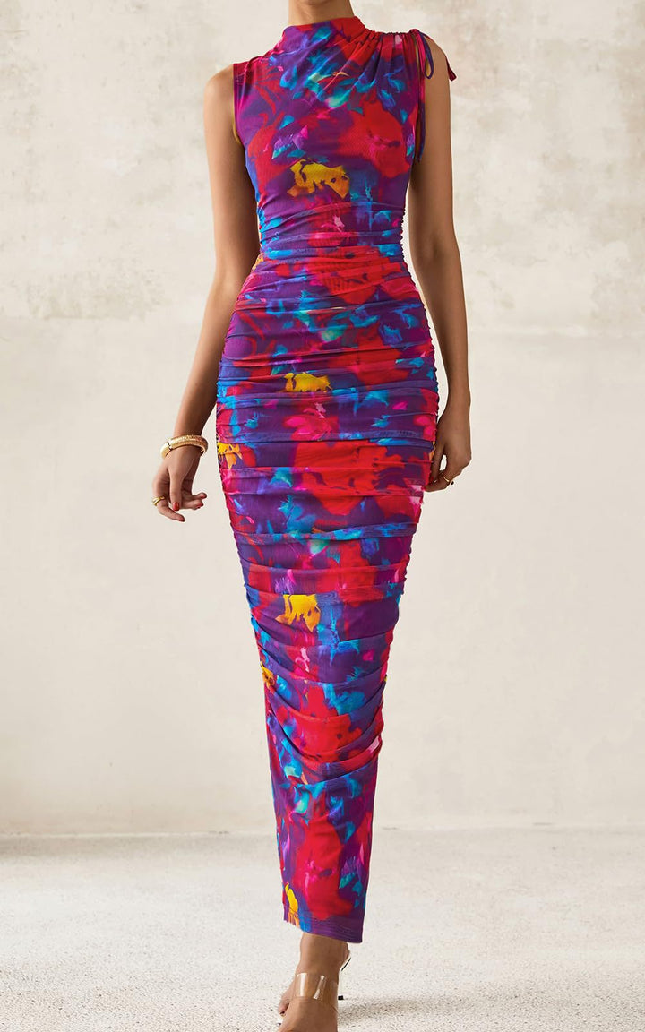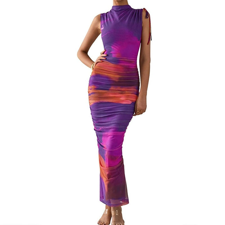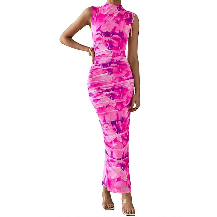 Mesh yarn, women's summer long flowers, independent station temperament tight split-ended sl...