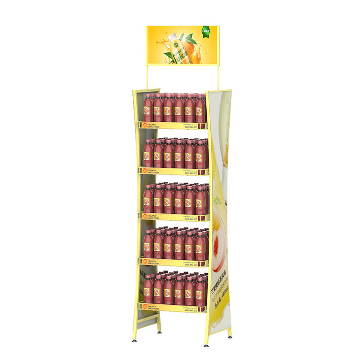 Metal beverage display rack Supermarket beverage display rack Juice water milk beer display rack to map customization