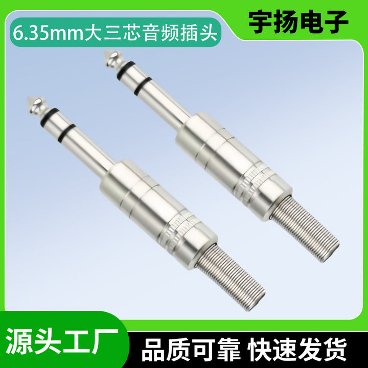 Metal nickel-plated 6.35 dual-channel microphone audio plug welded 6.5 large three-core mixer plug