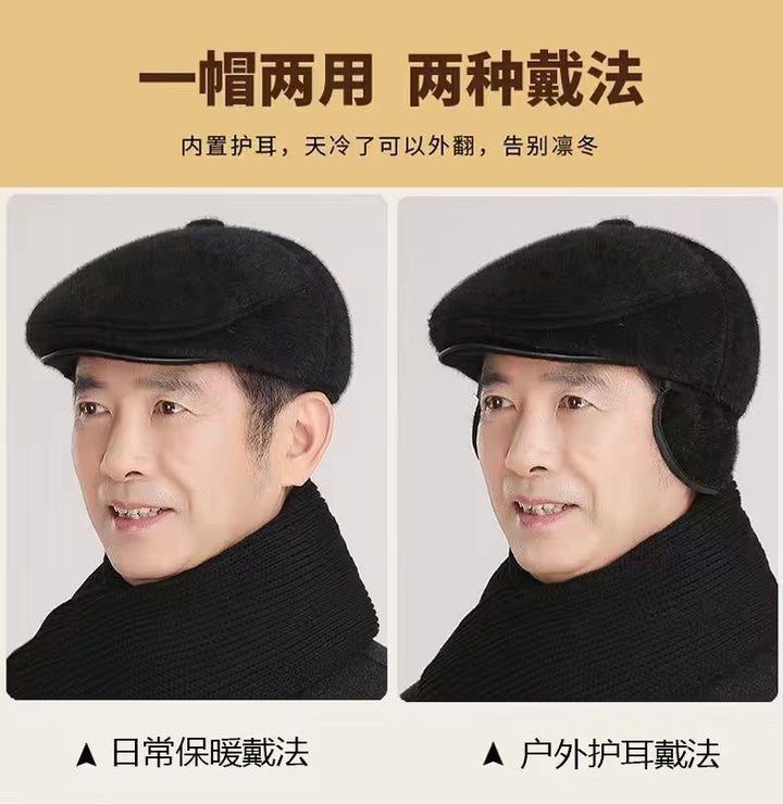 Middle-aged and elderly mink hair hat men's autumn and winter outdoor dad hat fleece ear protection cotton hat old man forward hat