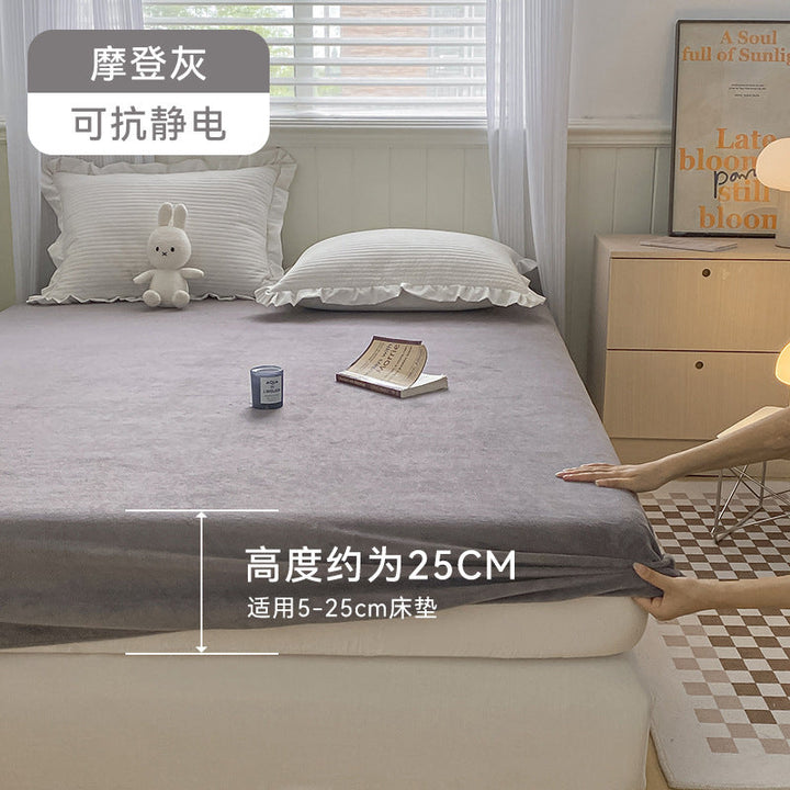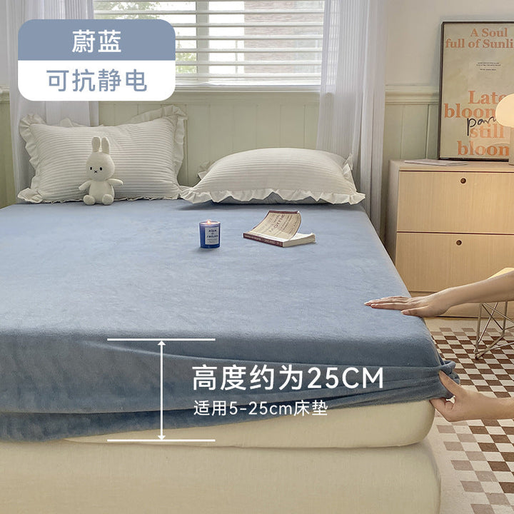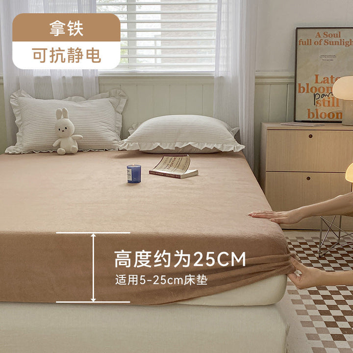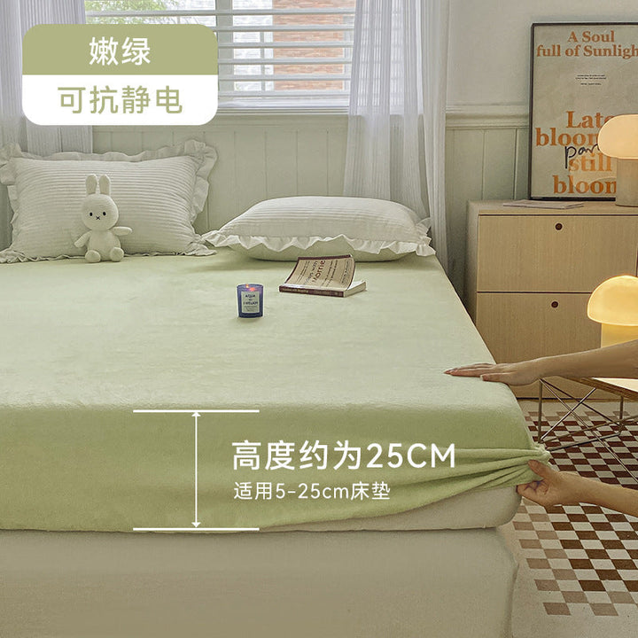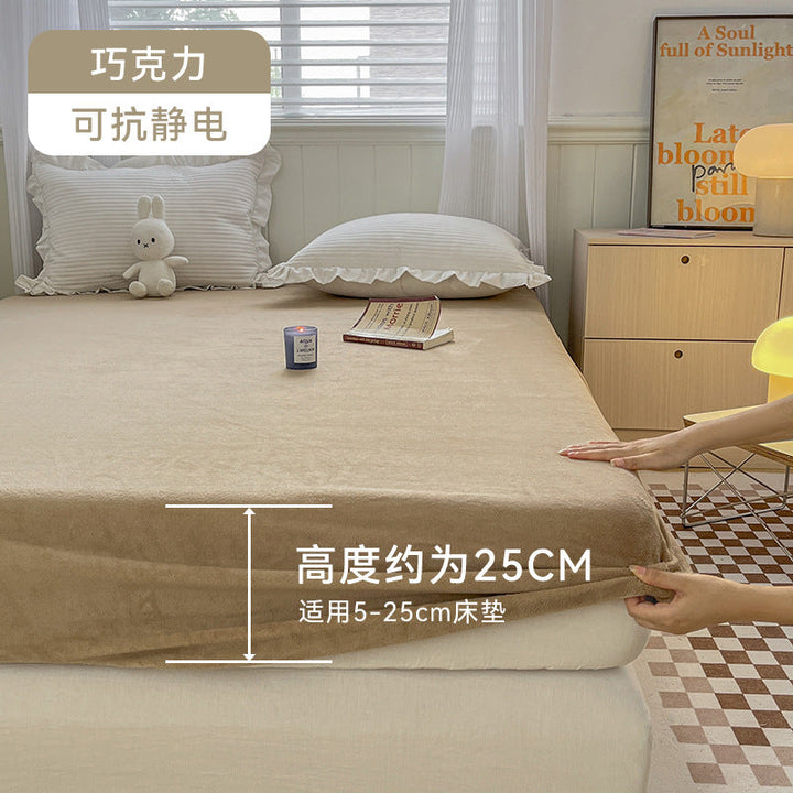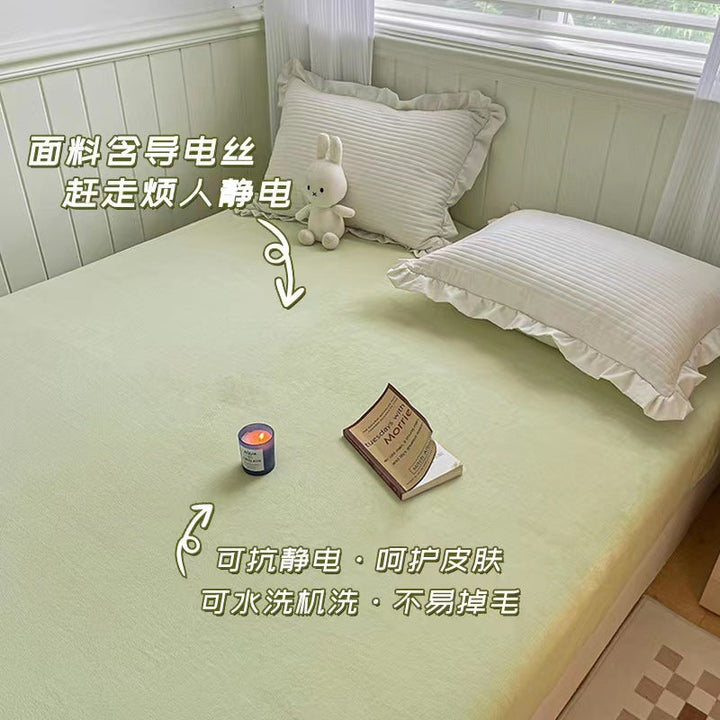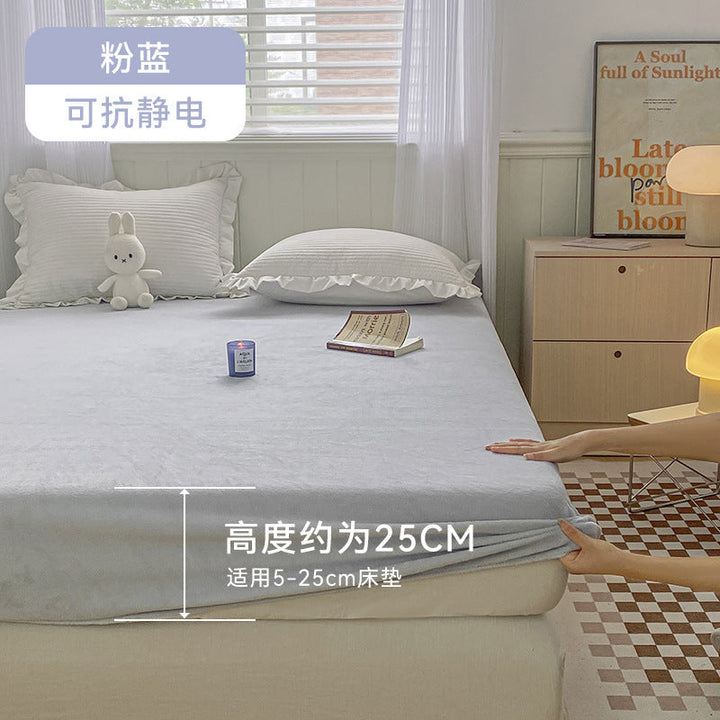 Milk fleece mattress single piece winter thickened coral fleece mattress cover protective cov...