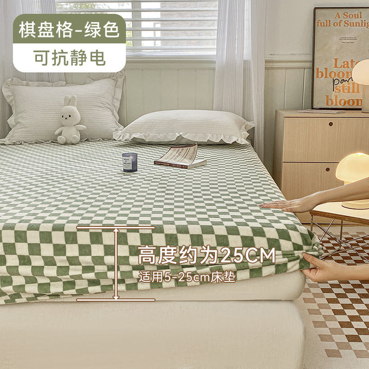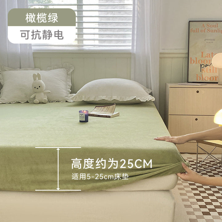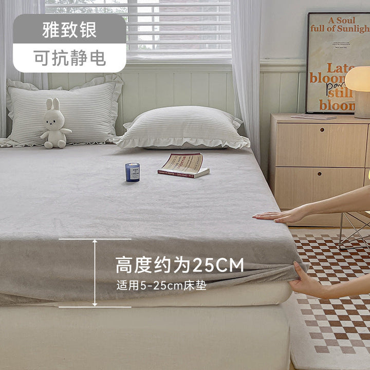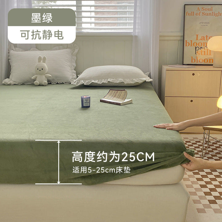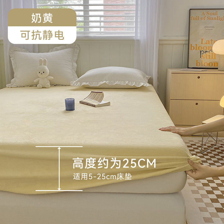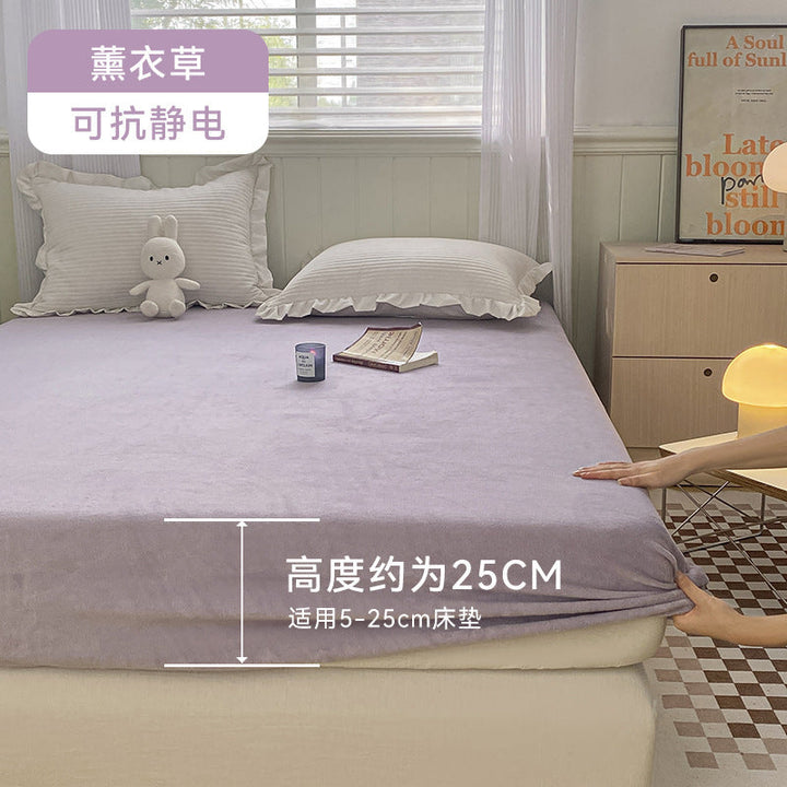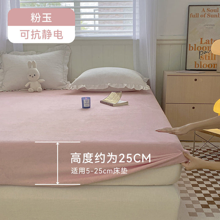 Milk fleece mattress single piece winter thickened coral fleece mattress cover protective cov...