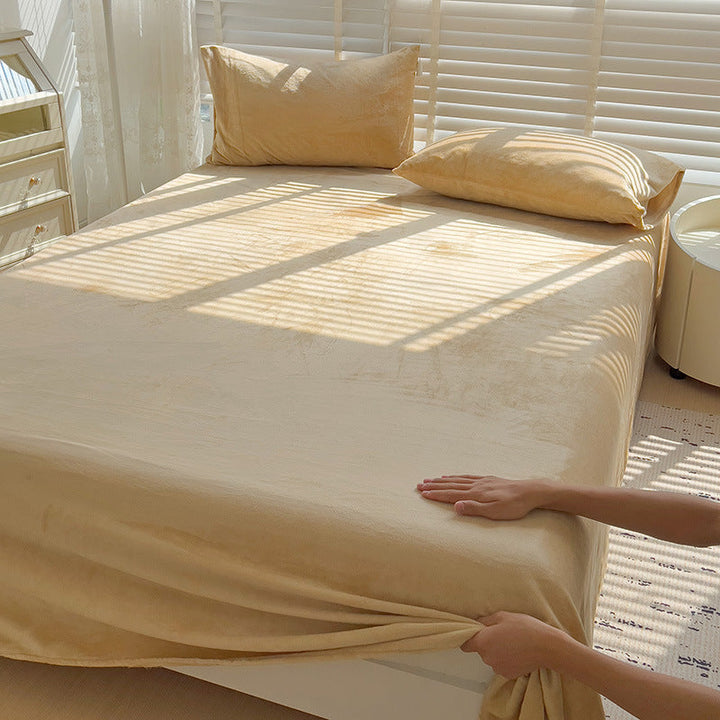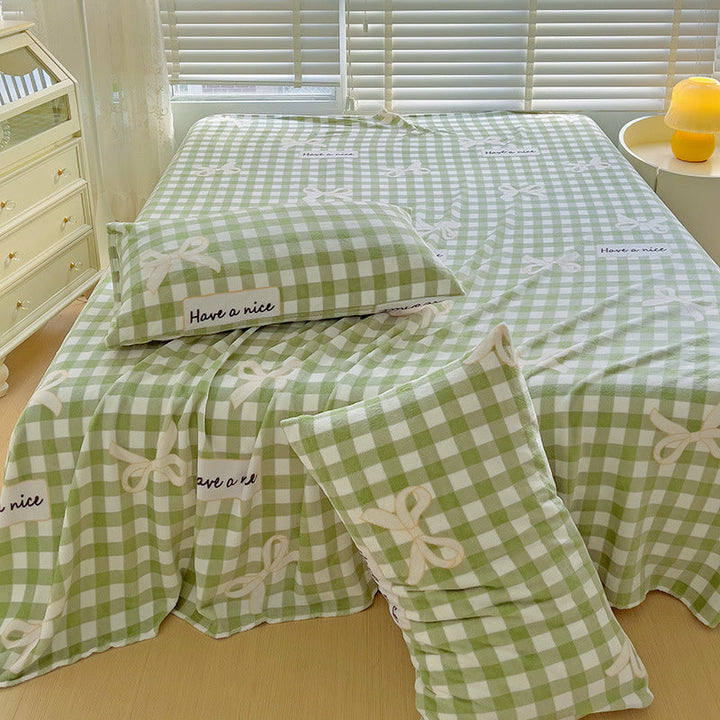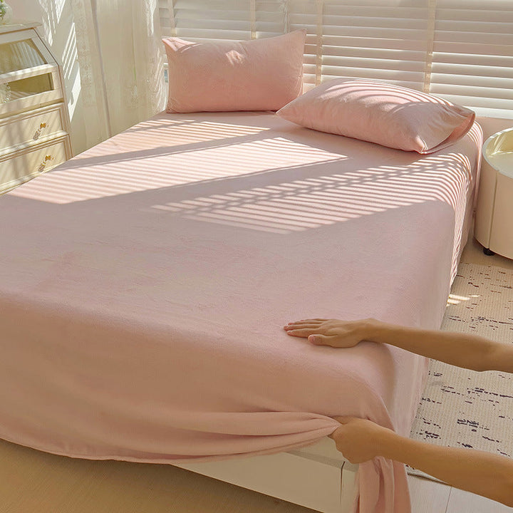 Milk fleece sheets, fleece thickened single-piece single-item sheets, student dormitory soft, skin-friendly and warm bed three-piece set