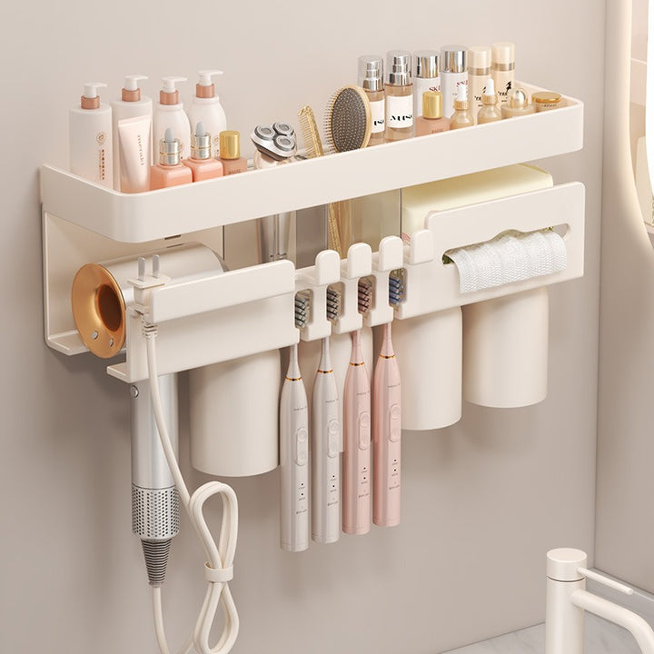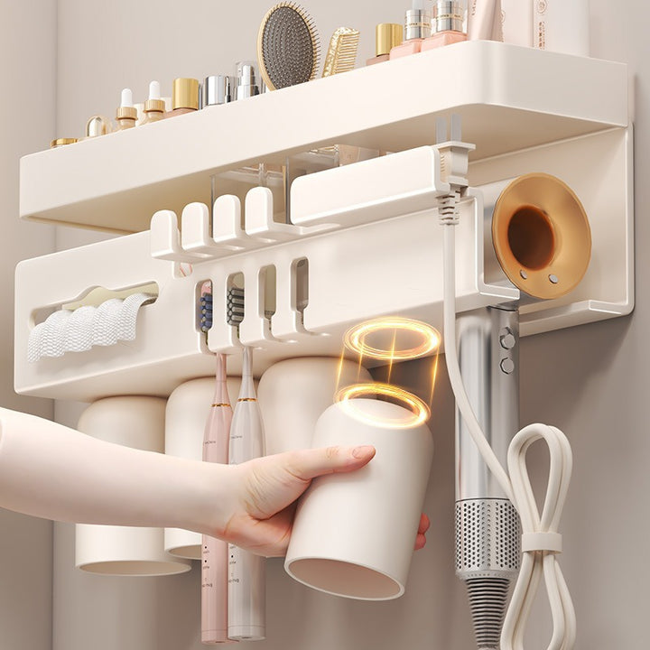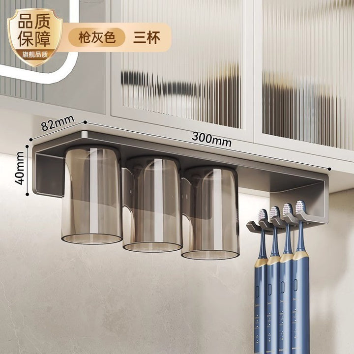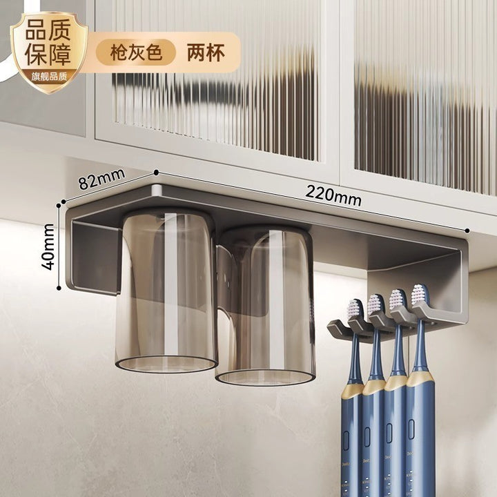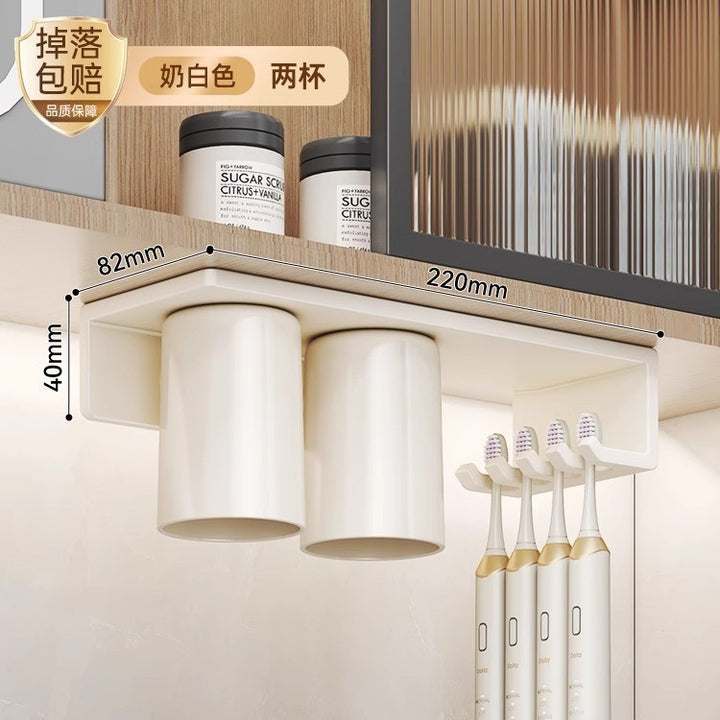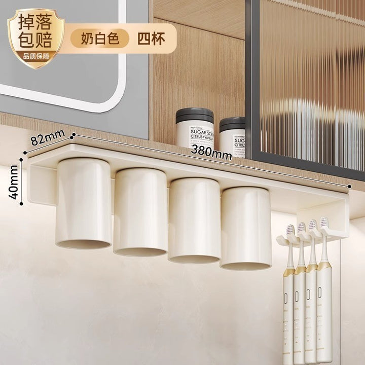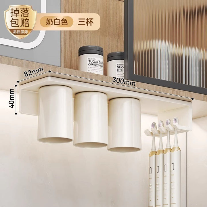 Milk white magnetic toothbrush shelf, wall-mounted non-punching washing, mouthwash cup, toothset, bathroom, tooth cup, toothbrush shelf