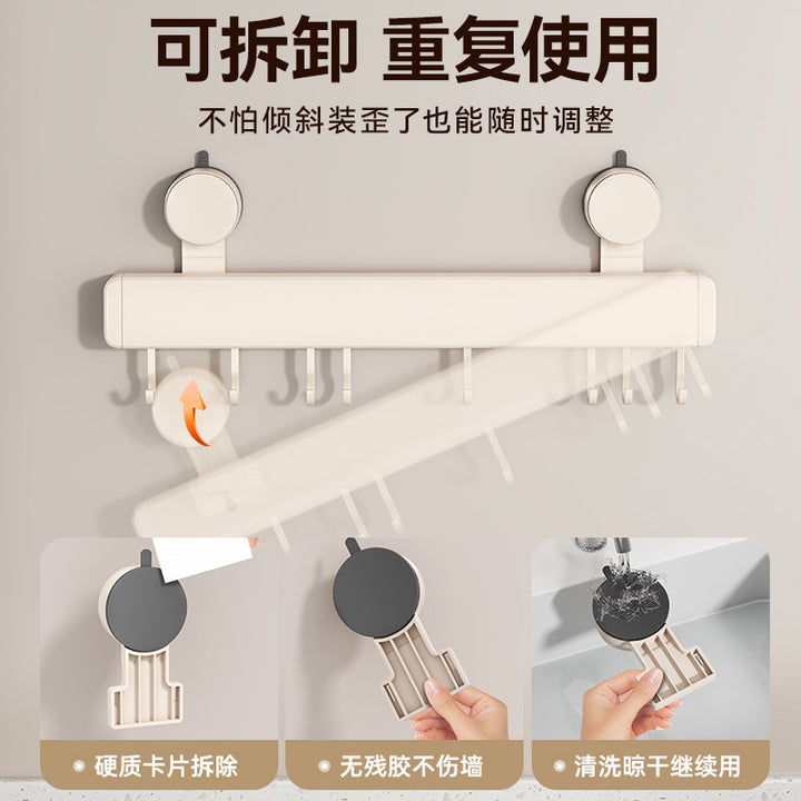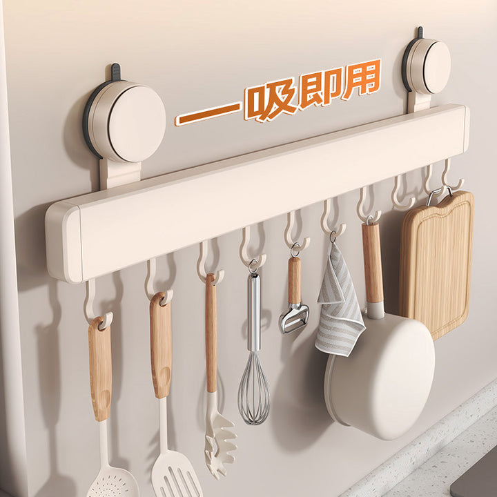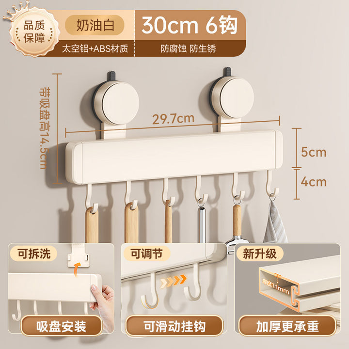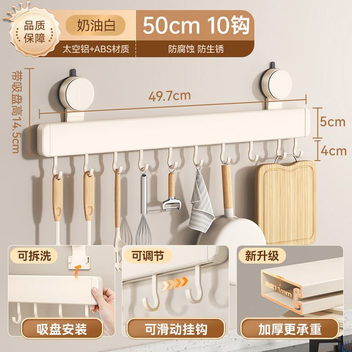 Milk white suction cup kitchen hook rack non-punching rod wall hanging kitchen utensils hanger spoon shovel rack storage rack