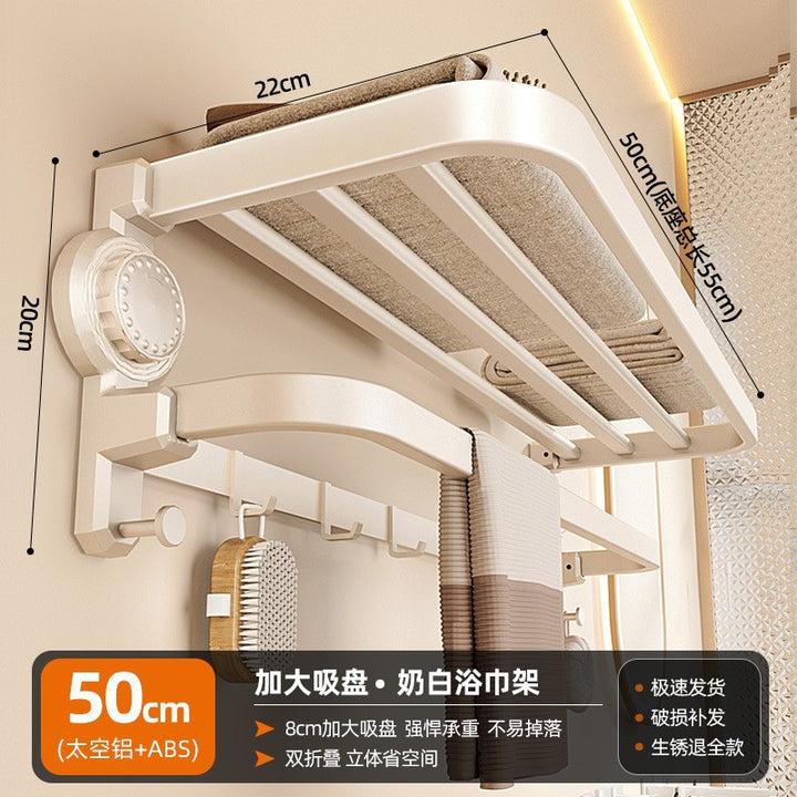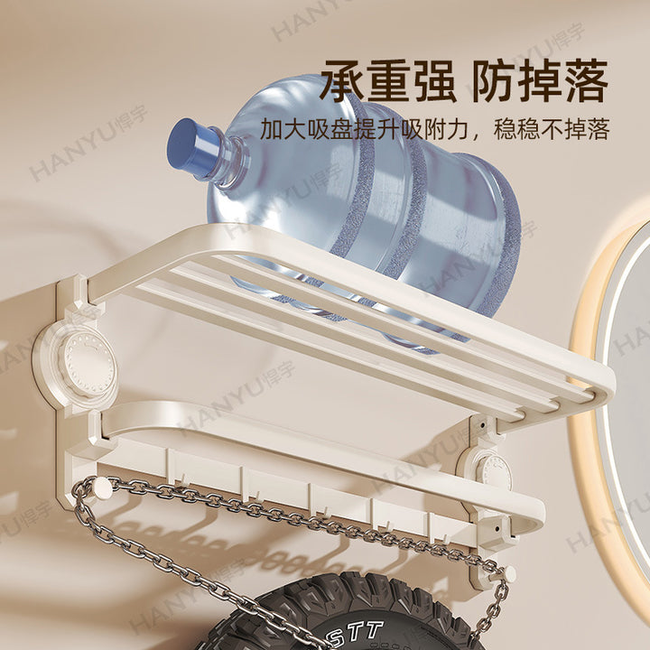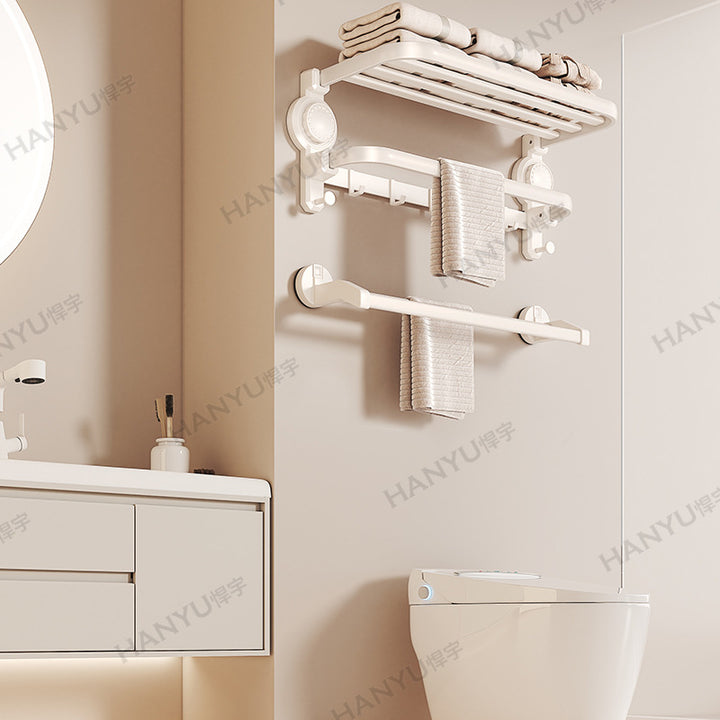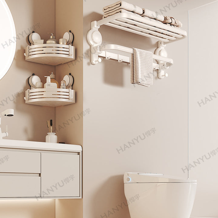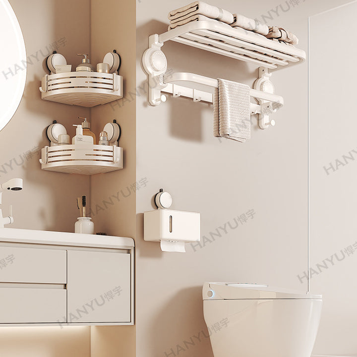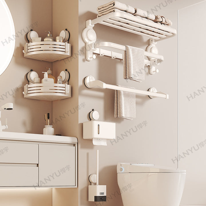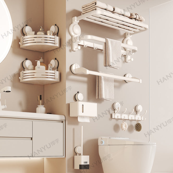 Milk white suction cup towel rack, bathroom non-punching bath towel rack, bathroom rack, toilet storage hanging rod set.