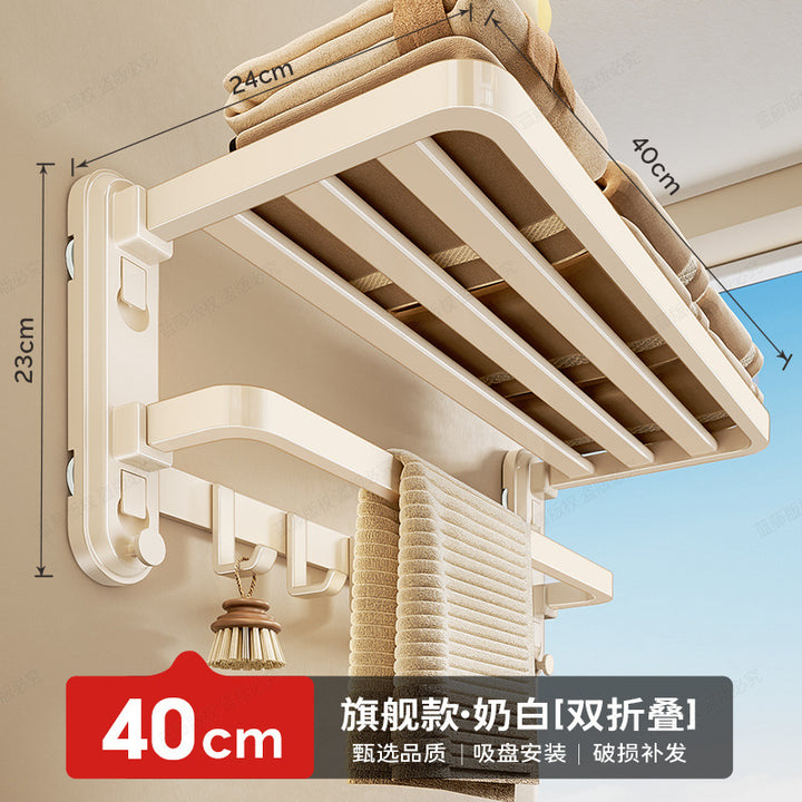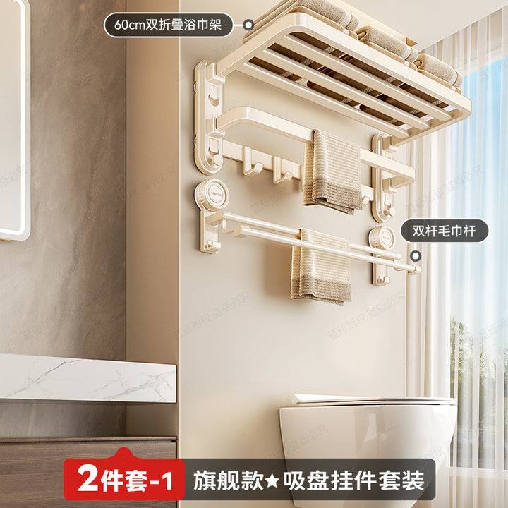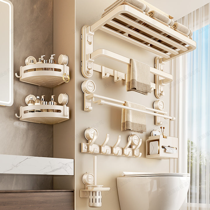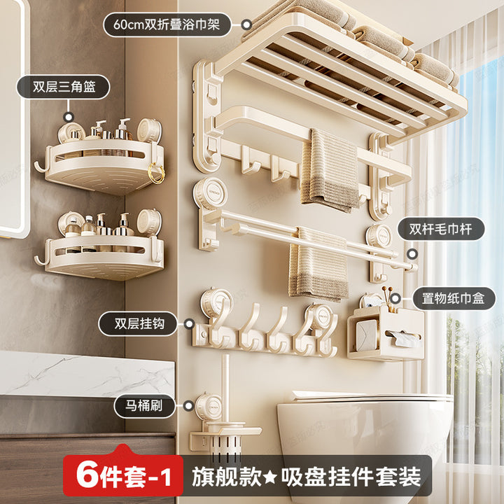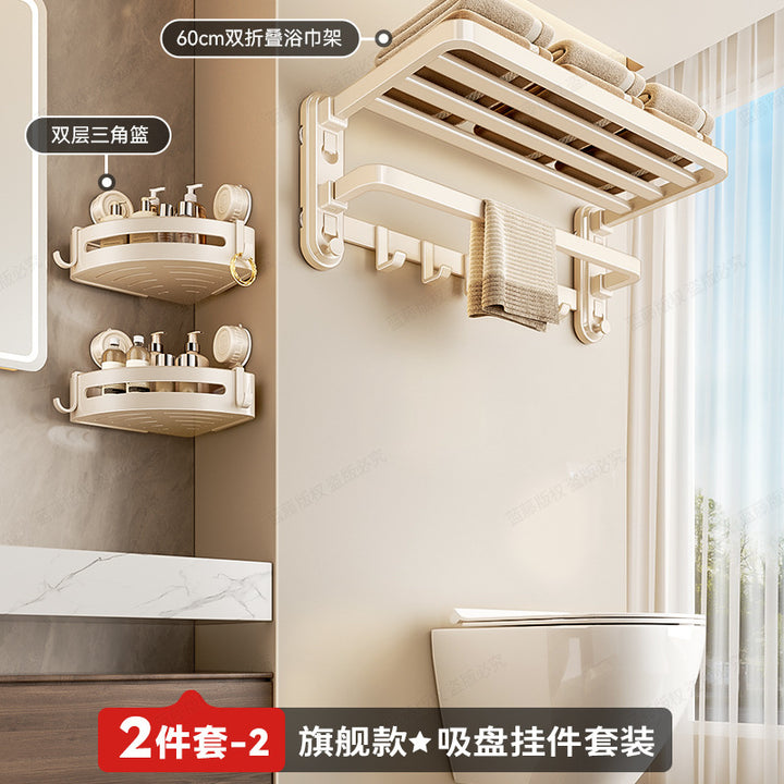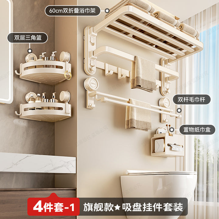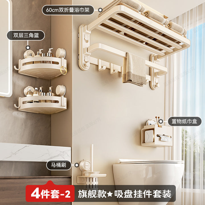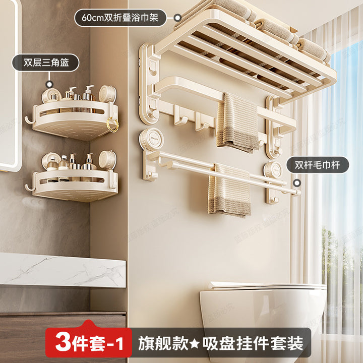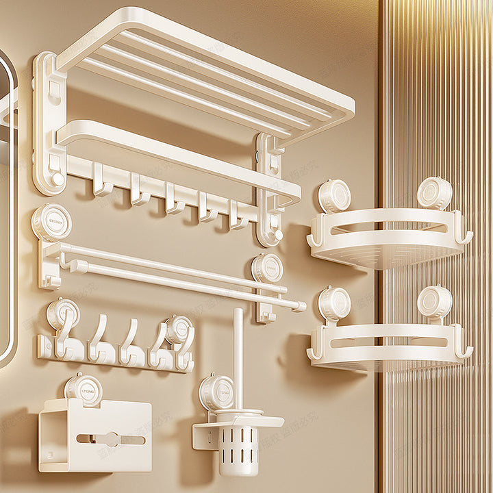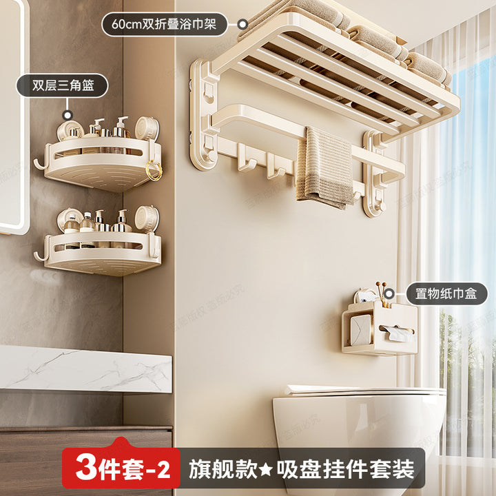 Milk white suction cup towel storage rack, bathroom free punching, bathroom rack, bath towel rack, toilet pendant set.
