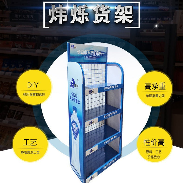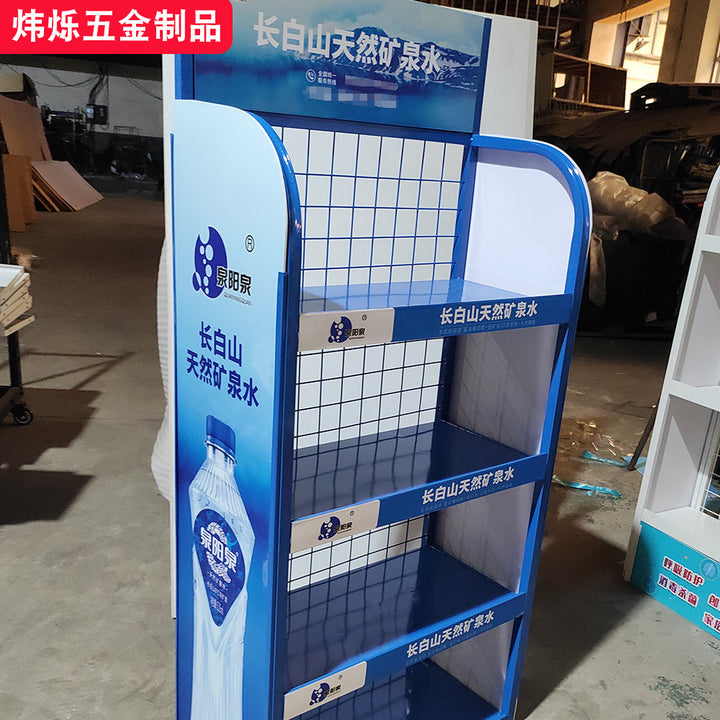 Mineral water beverage display rack, supermarket convenience store metal display rack floor-to-ceiling item display rack, mineral water shelf