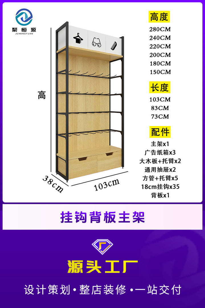 main frame, subframe, Plank main frame, Hook main rack, Plank main frame with drawers, Hook main rack including drawers, Wooden main frame with back plate and drawers, Hook main rack including back plate including drawers, Wooden main frame with light box and drawers, Pure white headband tube drawer main frame, White headband cartridge drawer main rack, Black headband cartridge drawer main rack, Pure white six-grid wooden box drawer main rack, White six-grid wooden box drawer main rack, Black six-grid wooden box drawer main rack, Pure white earring board drawer main rack, White earring board drawer main rack, Black earring board drawer main rack, Pure white glasses case drawer main rack, White glasses case drawer main rack, Black glasses case drawer main rack, 1 meter large wood laminate * 5 groups, 1 meter long hook layer * 5 groups |