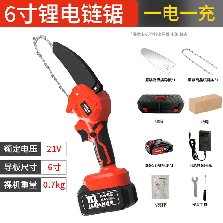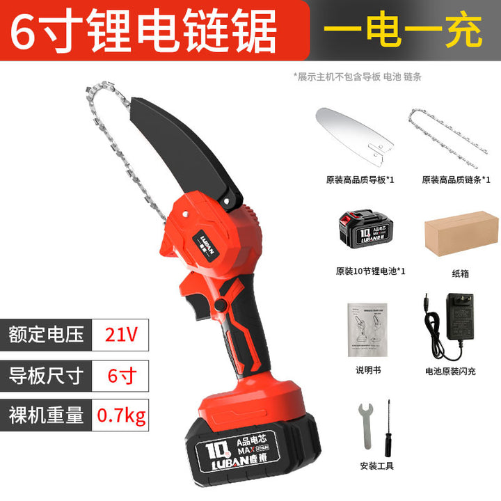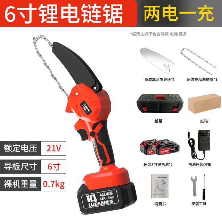 Mini Lithium Chainsaw Rechargeable Household Chainsaw Portable Logging Pruning Saw, Cross-Border Wholesale Single Hand Saw