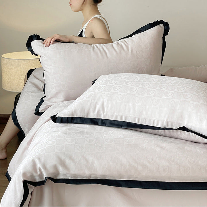 Minimal light luxury 100s pure cotton four-piece set of simple high-grade jacquard pure cotton bedding lady style elegant and exquisite