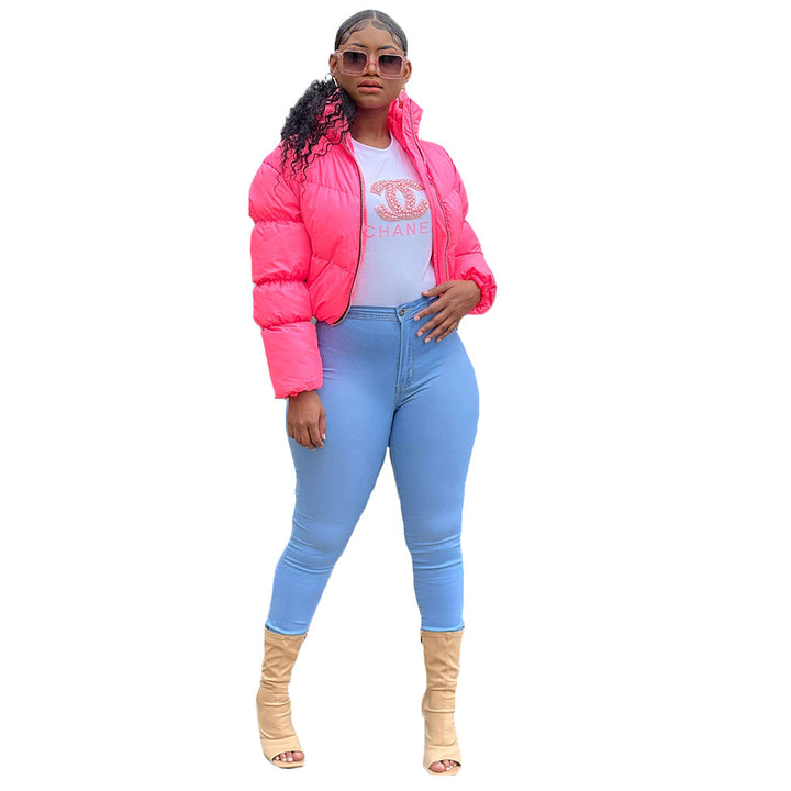 MM2141 European and American supply solid color cardigan zipper warm women's down jacket top