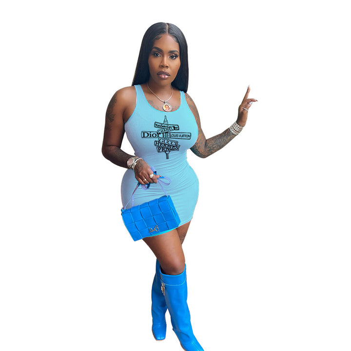 MM2162X Independent Station Summer Dress Solid Color European and American Women's Sleeveless Sexy Hip Wrap Short Skirt