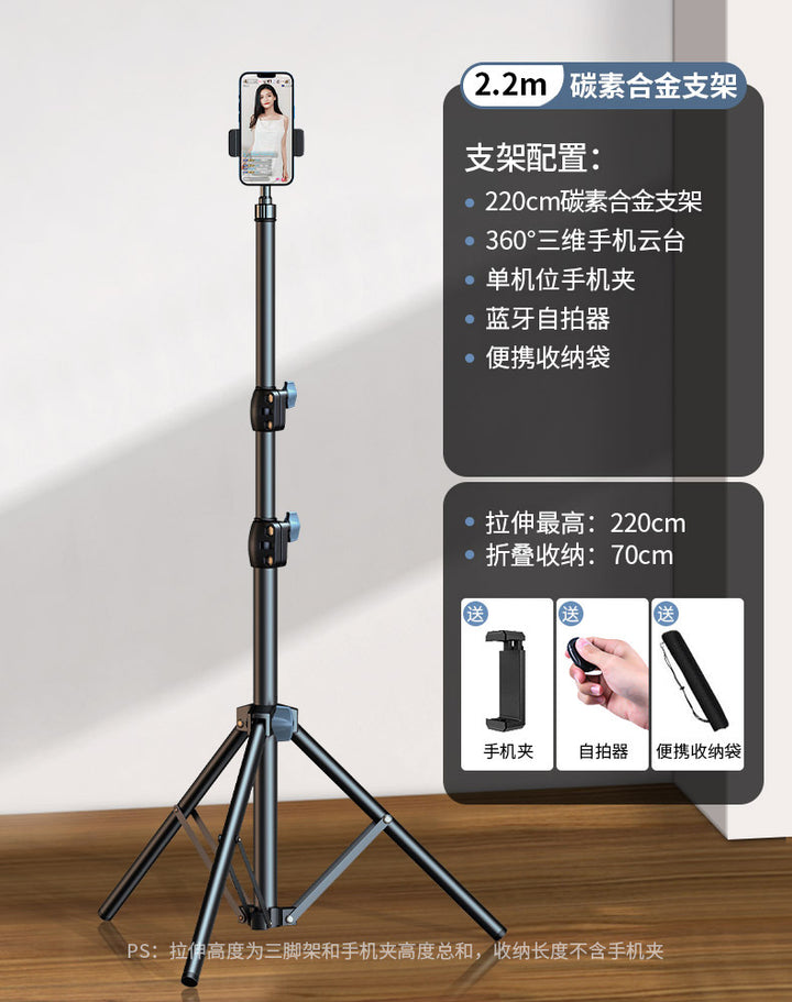 65CM [Carbon Alloy Bracket] Single position + storage bag, 1.8 meters [carbon alloy bracket] single position + storage bag., 1.8 meters [carbon alloy bracket] single position + selfie device + storage bag, 1.8 meters [carbon alloy bracket] dual-position clip power bank + storage bag, 1.8 meters [carbon alloy bracket] dual-position can clip iPad + storage bag, 1.8米【碳素合金支架】四机位+收纳袋, 1.8米【碳素合金支架】单机位+10寸灯+自拍器+收纳袋, 1.8米【碳素合金支架】四机位+10寸灯+自拍器+收纳袋, 2.2米【碳素合金支架】单机位+收纳袋, 2.2米【碳素合金支架】单机位+自拍器+收纳袋, 2.2米【碳素合金支架】双机位可夹充电宝+收纳袋, 2.2米【碳素合金支架】双机位可夹iPad+收纳袋, 2.2米【碳素合金支架】四机位+收纳袋, 2.3米【碳素合金支架】单机位+10寸灯+自拍器+收纳袋, 2.3米【碳素合金支架】四机位+10寸灯+自拍器+收纳袋, 2.3米【碳素合金支架】四机位+10寸灯+话筒杆+自拍器+收纳袋, 1.8米【加粗加重碳素钢支架】单机位+收纳袋, 1.8米【加粗加重碳素钢支架】单机位+自拍器+收纳袋, 1.8米【加粗加重碳素钢支架】单机位+10寸灯+自拍器+收纳袋, 1.8米【加粗加重碳素钢支架】四机位+10寸灯+自拍器+收纳袋, 2.2米【加粗加重碳素钢支架】单机位+收纳袋, 2.2米【加粗加重碳素钢支架】单机位+自拍器+收纳袋, 2.3米【加粗加重碳素钢支架】单机位+10寸灯+自拍器+收纳袋, 2.3米【加粗加重碳素钢支架】四机位+10寸灯+自拍器+收纳袋 |