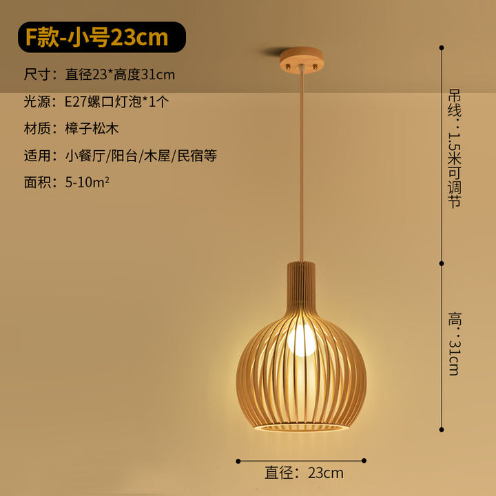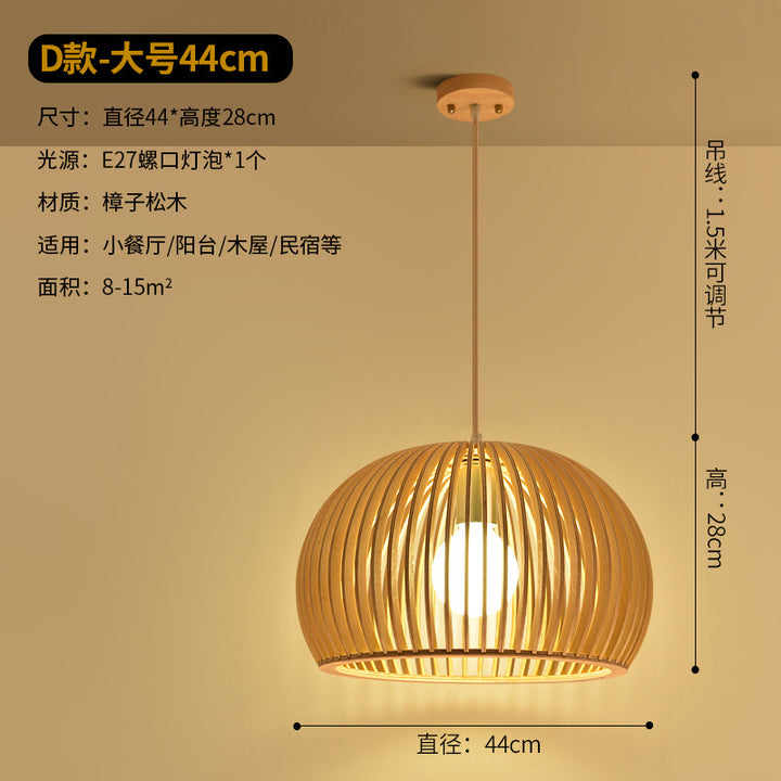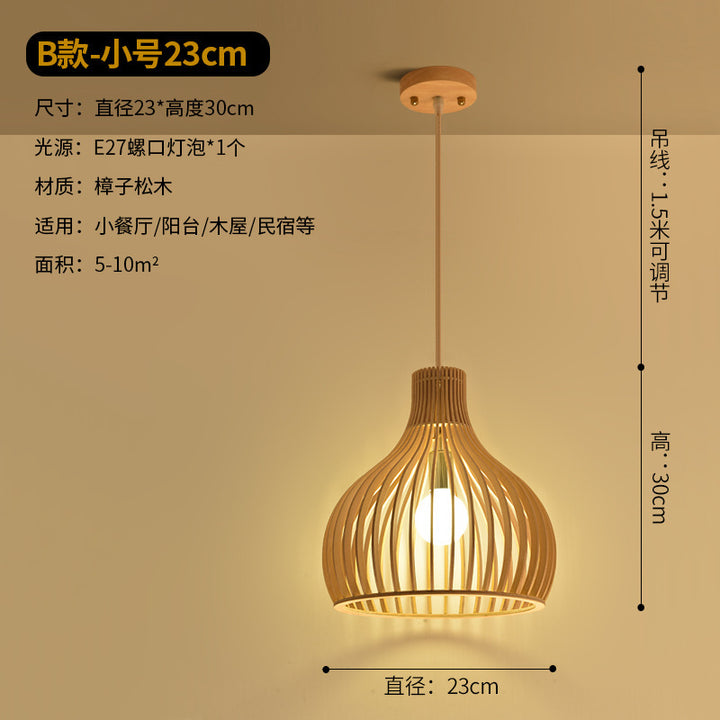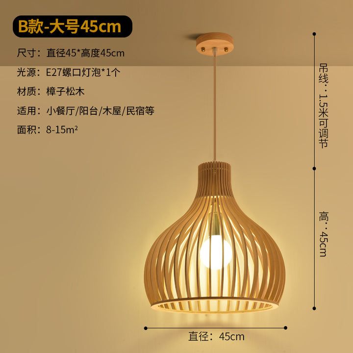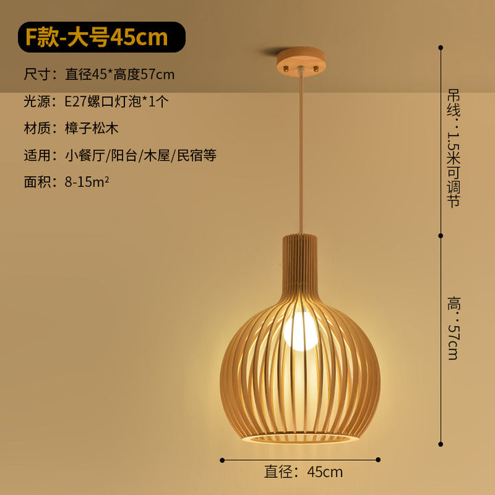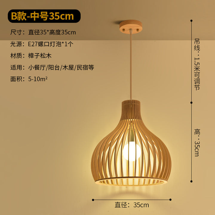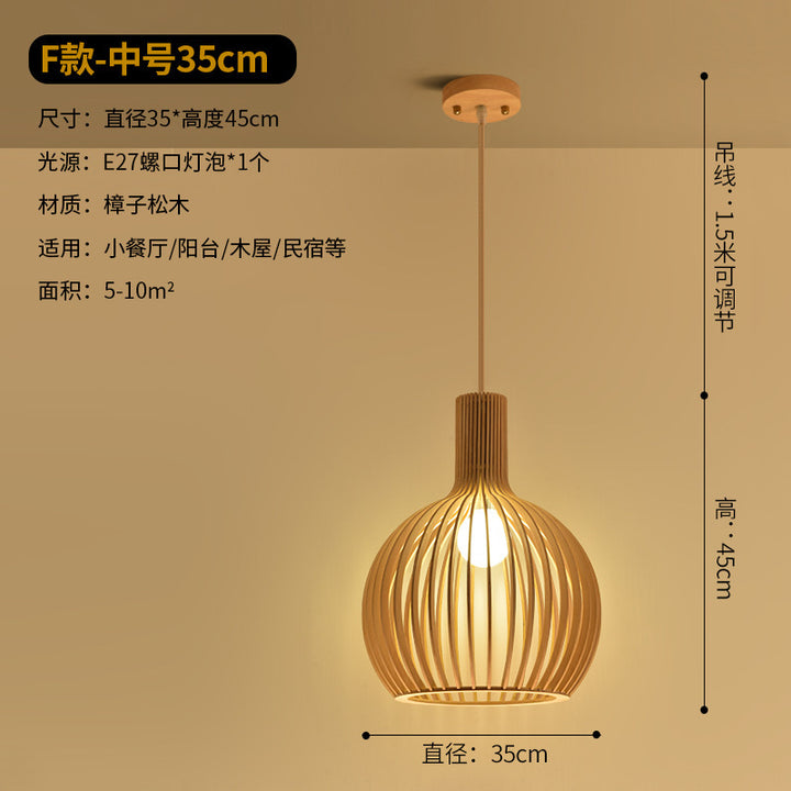 Modern Chinese restaurant living room solid wood chandelier creative birdcage hotel wood chandelier single head Japanese wooden lamps