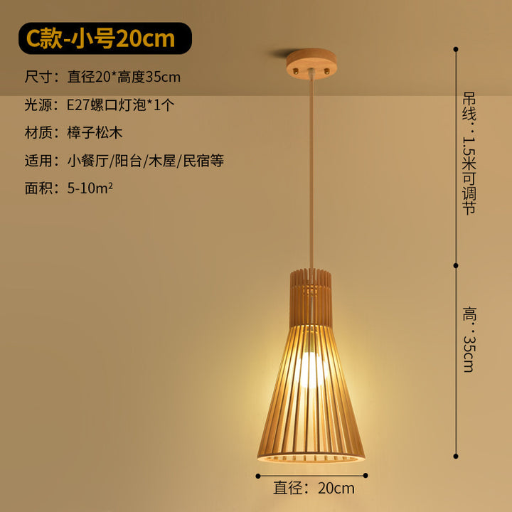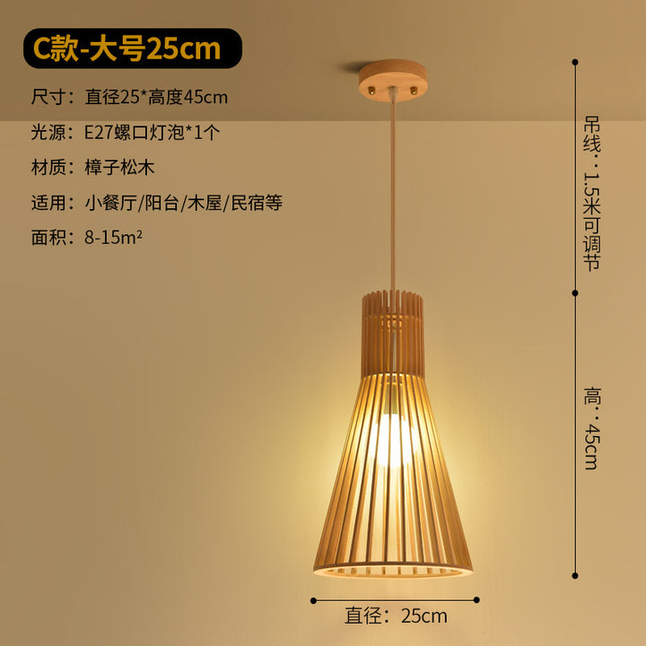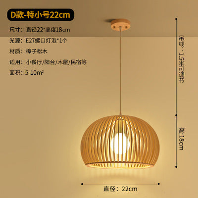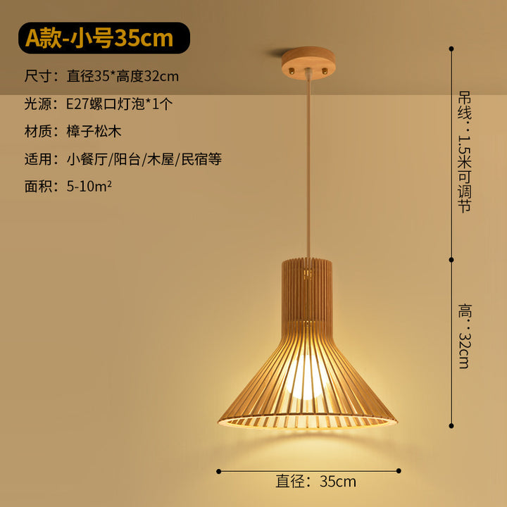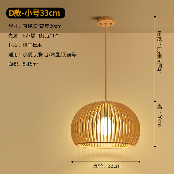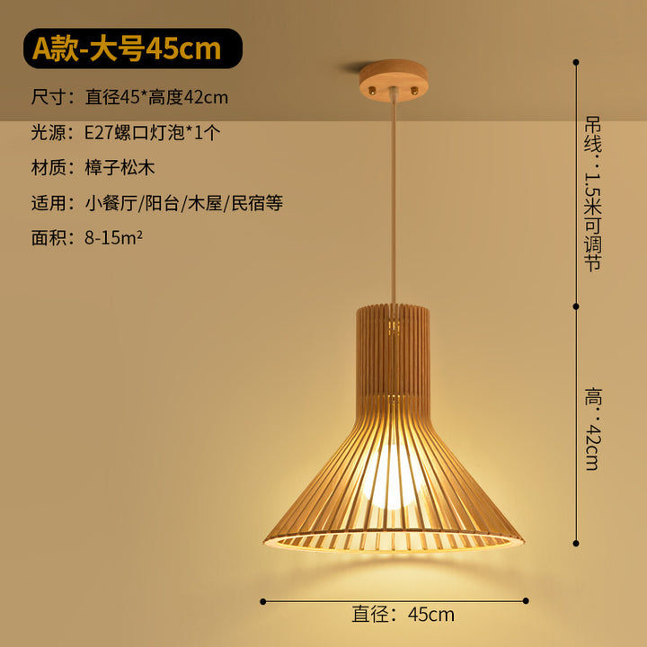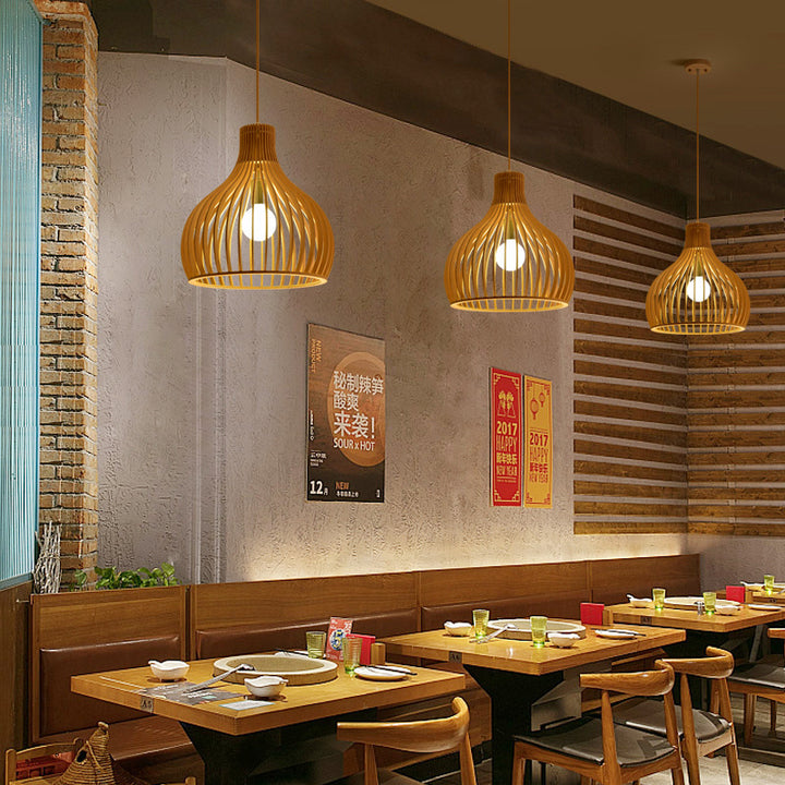 Modern Chinese restaurant living room solid wood chandelier creative birdcage hotel wood chandelier single head Japanese wooden lamps