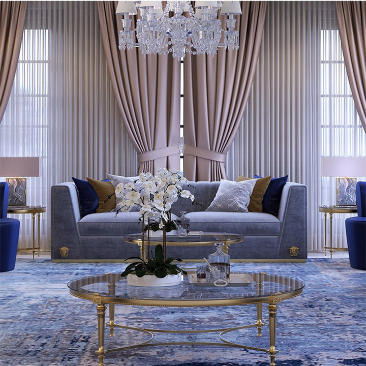 Modern light luxury metal avatar fabric sofa American large apartment studio villa model room living room furniture