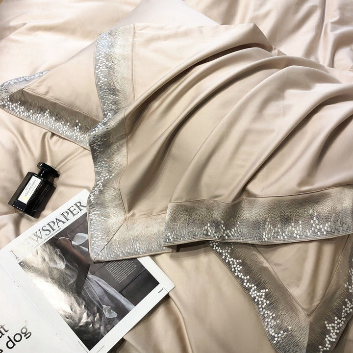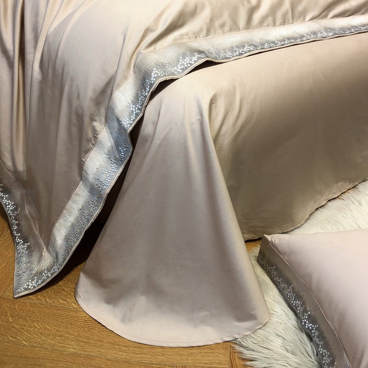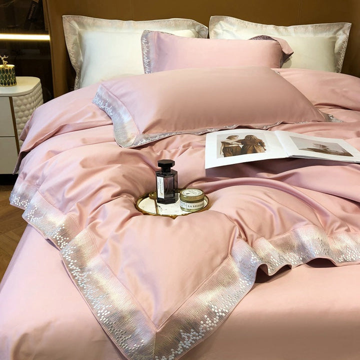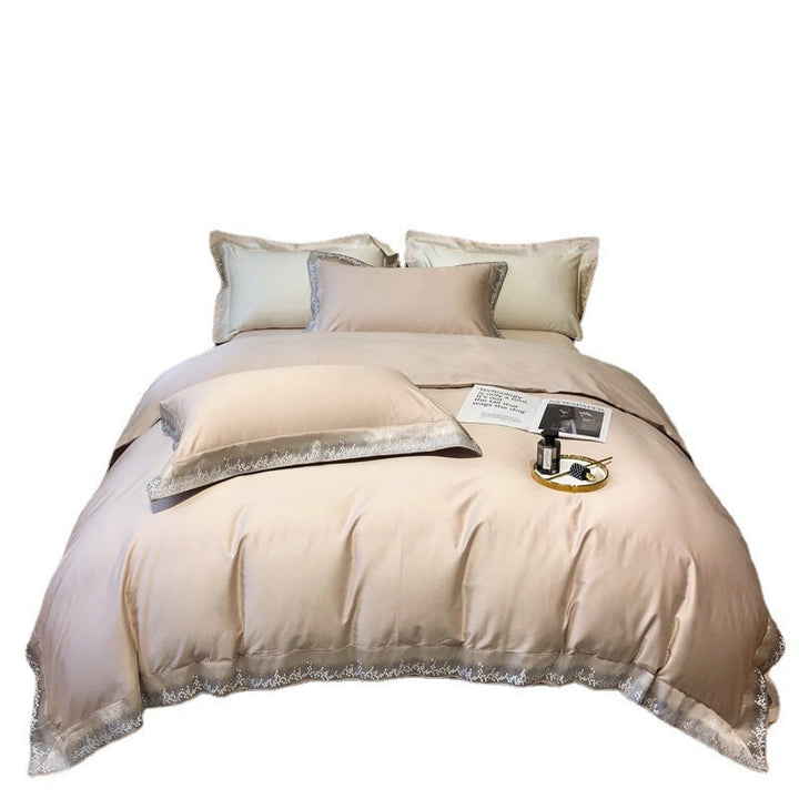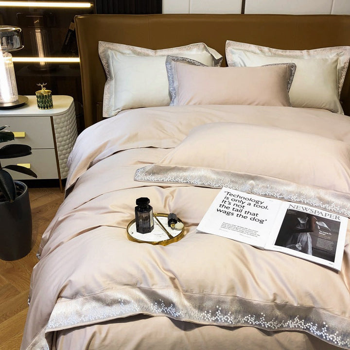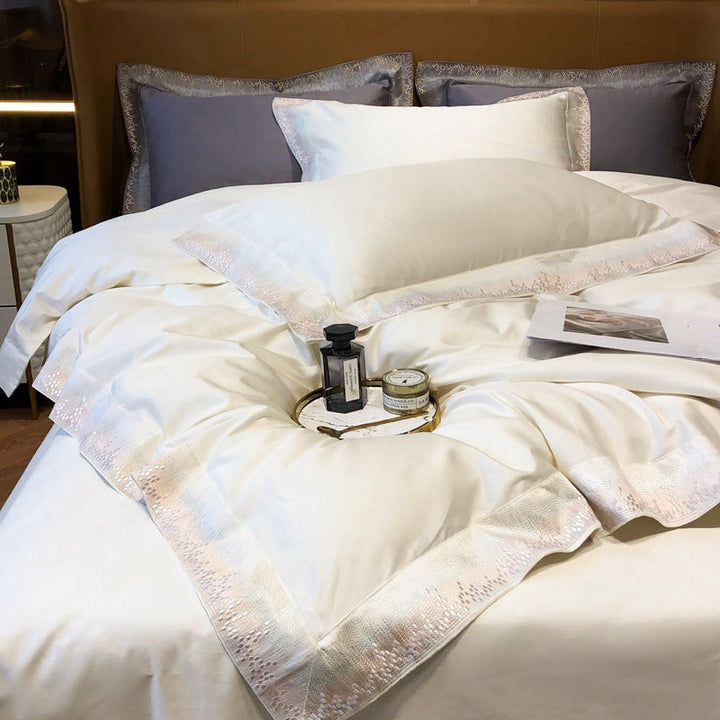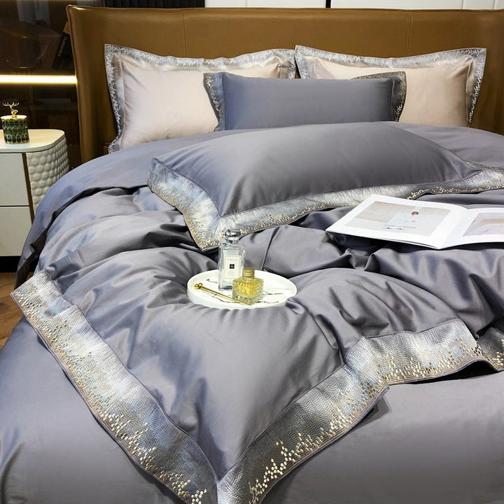 Modern minimalist light luxury Xinjiang long-staple cotton four-piece set of high-end pure cotton satin embroidery bedding Home Textiles T