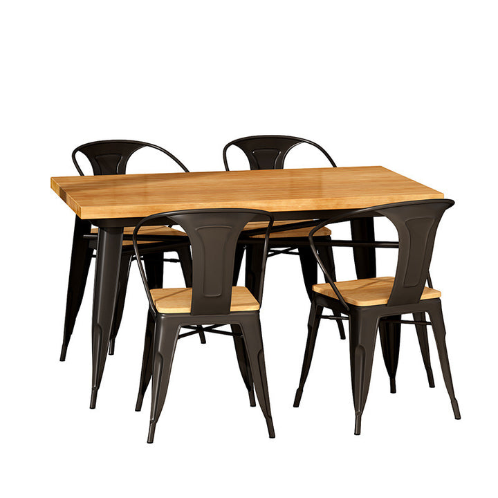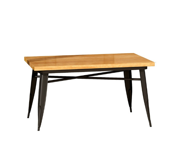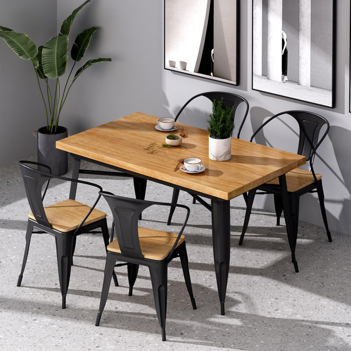 Modern simple cafe restaurant hotel commercial rectangular table industrial style solid wood wrought iron dining table and chair combination