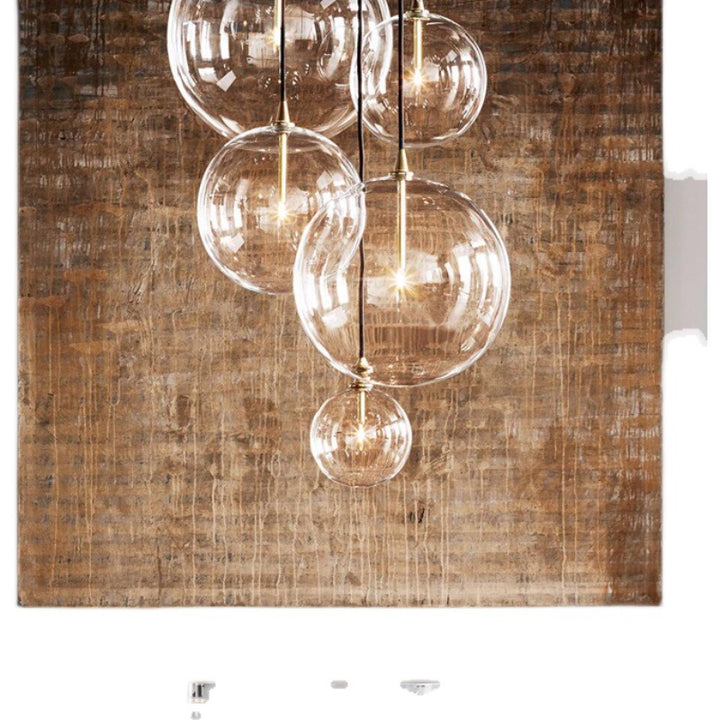 Modern simple glass chandelier villa hall combination restaurant bar clothing store bedroom bedside transparent ball lamp