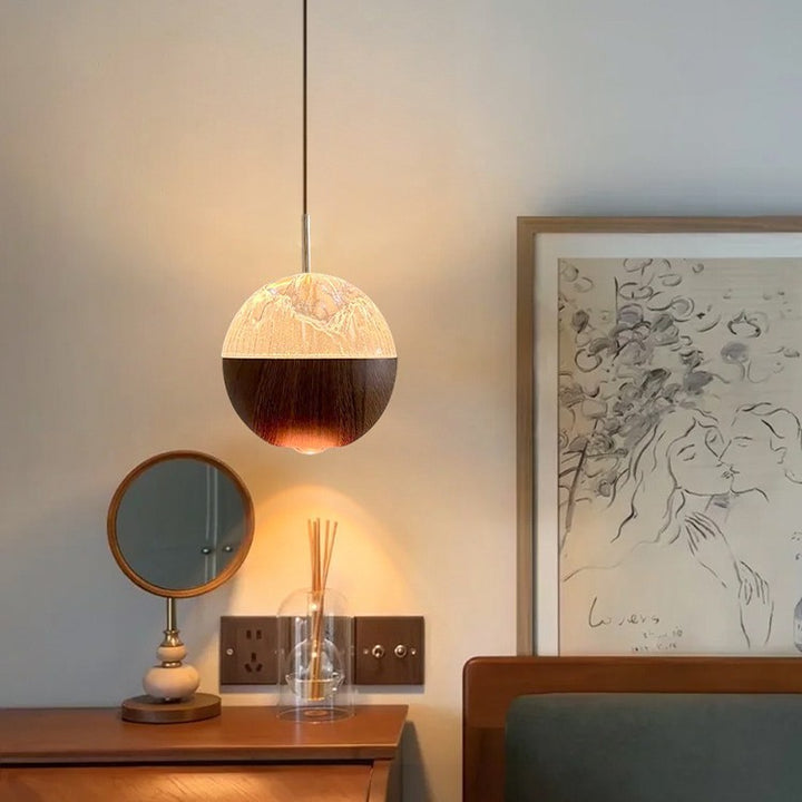 Modern simple ice crack bedroom bedside small chandelier walnut color smart touch sensor retractable dining room chandelier