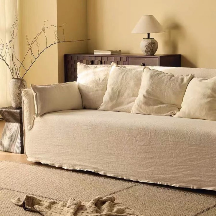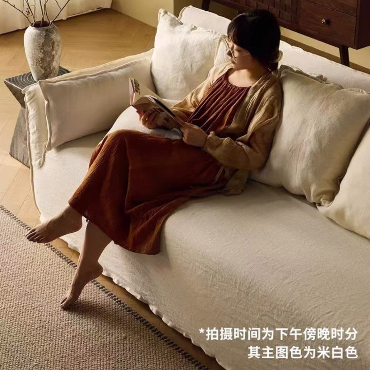 Modern simple linen removable and washable fabric sofa wabi sand wind small apartment straight row single person three person living room furniture