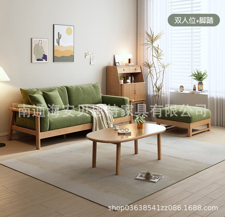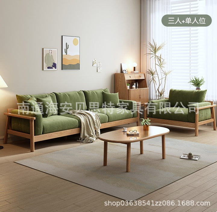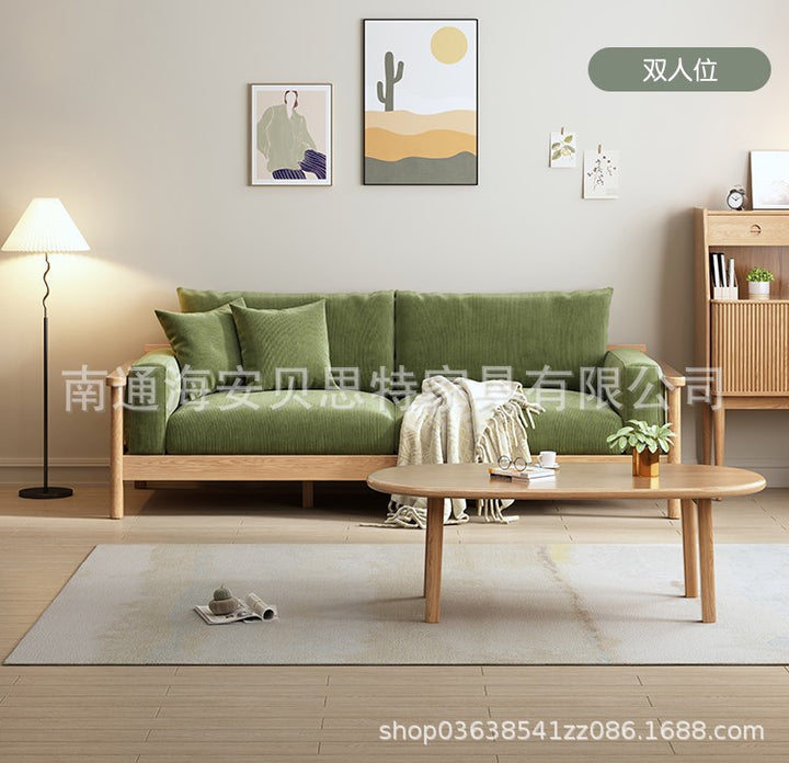 Modern simple solid wood corduroy living room sofa combination American light luxury log smal...