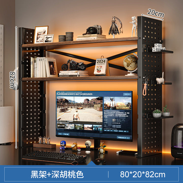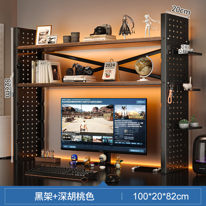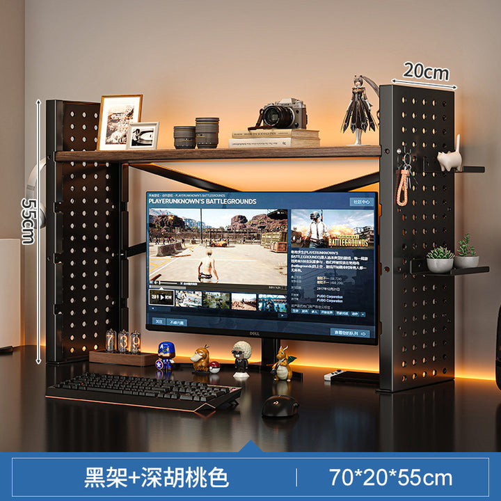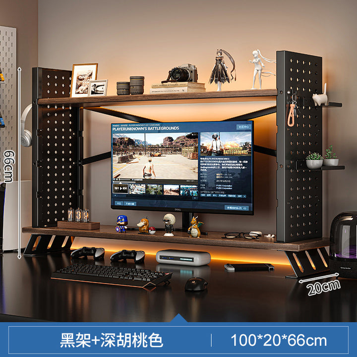 Monitor heightening rack desktop computer desk rack multi-layer wrought iron hole board multi-functional e-sports room storage rack