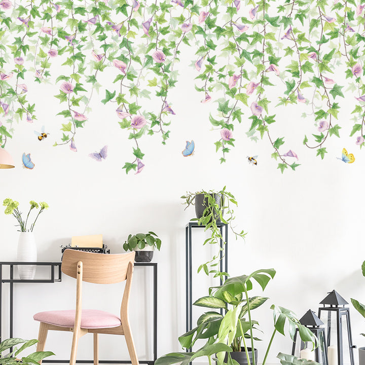 Morning glory top corner line decorative sticker sofa bedroom background plant wall sticker vine wall sticker self-adhesive waterproof sticker