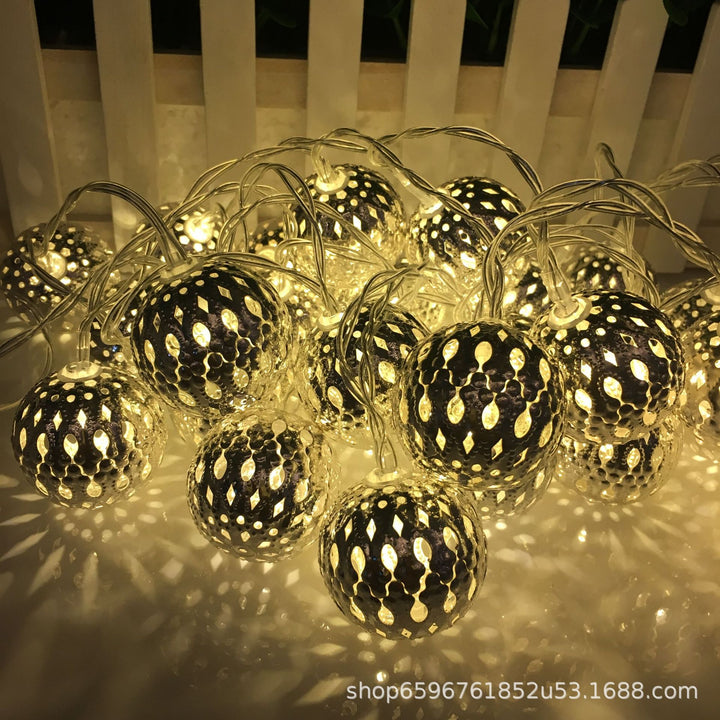 Morocco ball LED string light Christmas wrought iron ball decorative light string waterproof battery box iron ball star small lantern