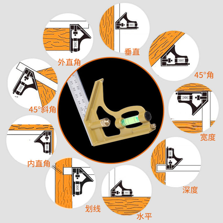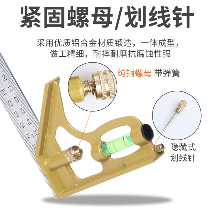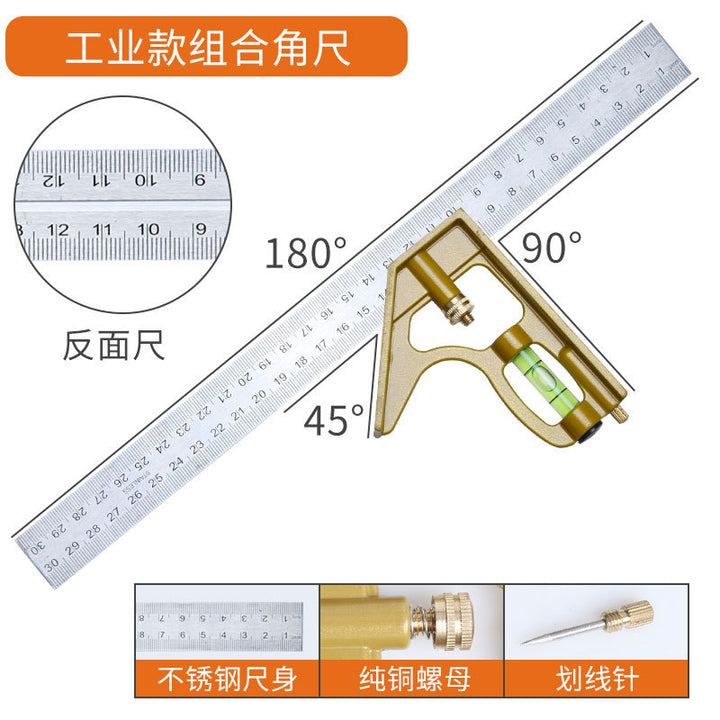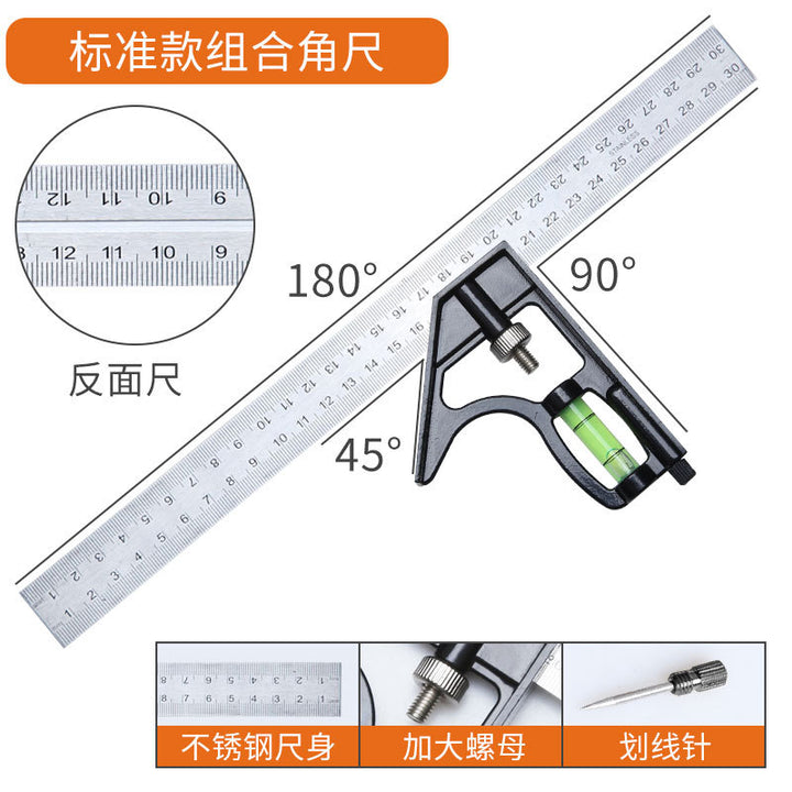 Movable angle ruler 90 degrees stainless steel square ruler Multifunctional woodworking special angle ruler 45 Industrial grade measuring steel ruler