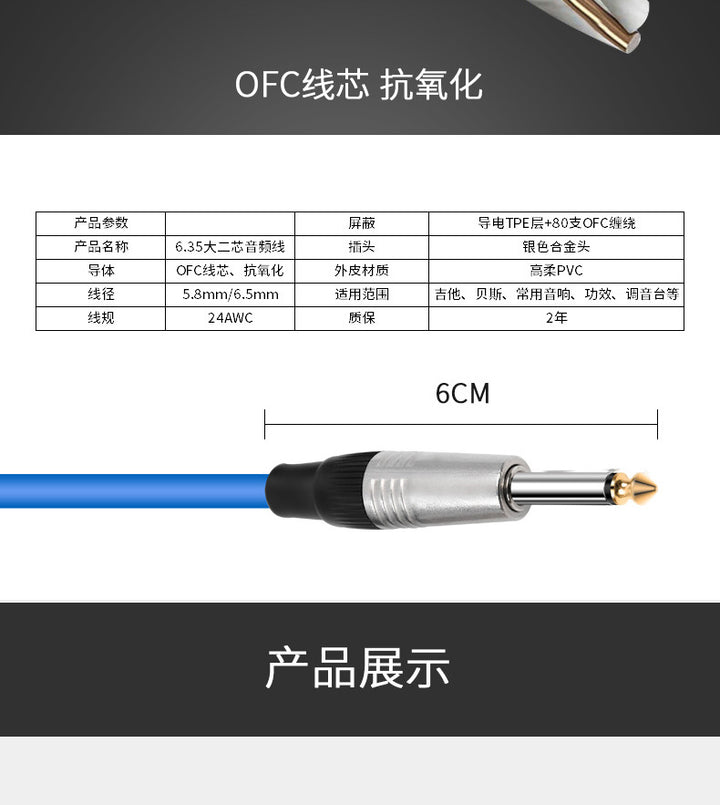 Multi-color full gold-plated straight-to-bend woven mesh 6.35 guitar cable, electronic organ,...