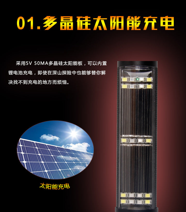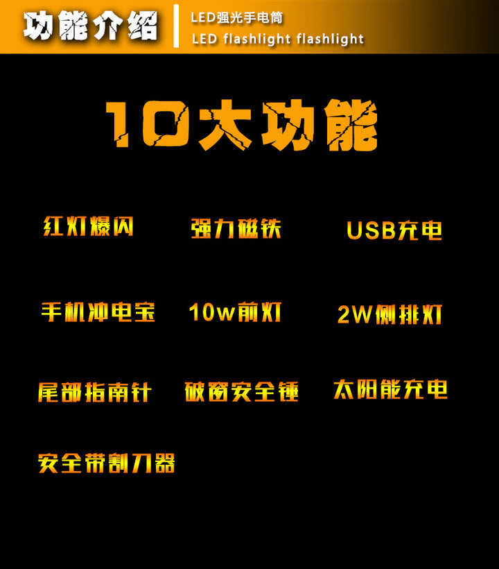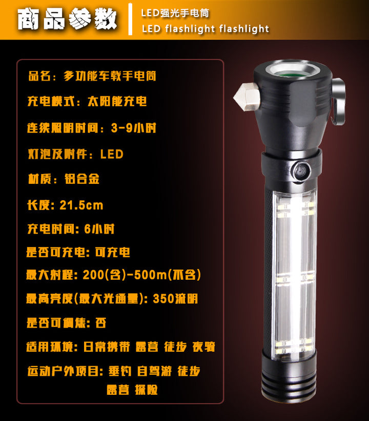 Multi-function car Solar safety hammer Alarm Escape rescue flashlight LED strong light charging COB flashlight