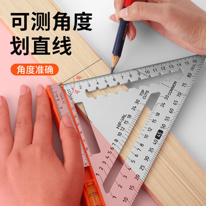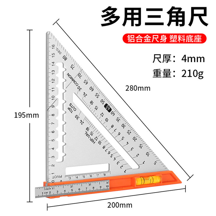 Multifunctional aluminum alloy triangle ruler woodworking horizontal triangle plate 90 degrees 45 degrees protractor square ruler goods