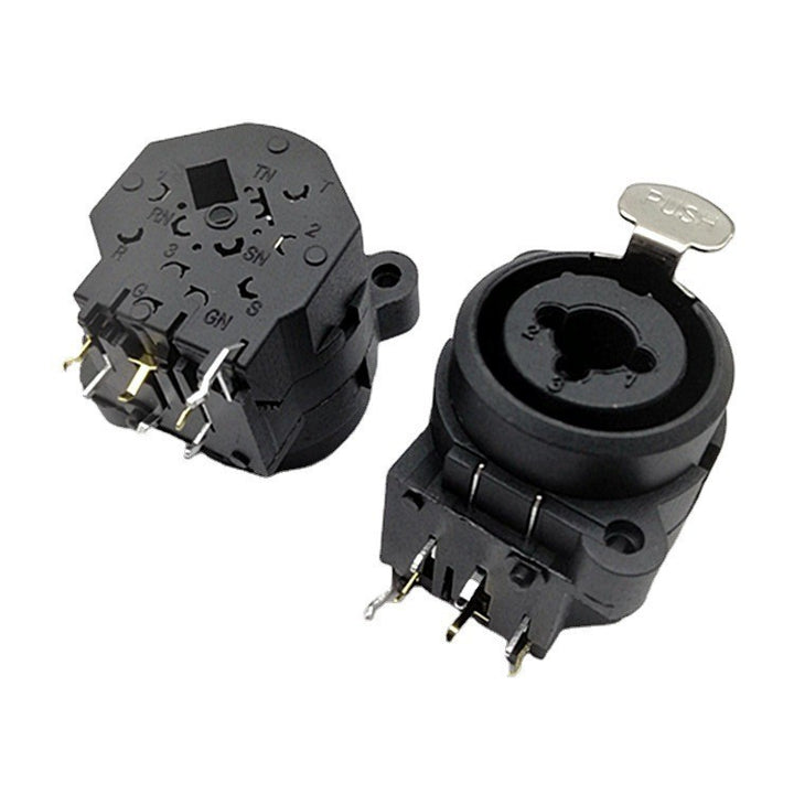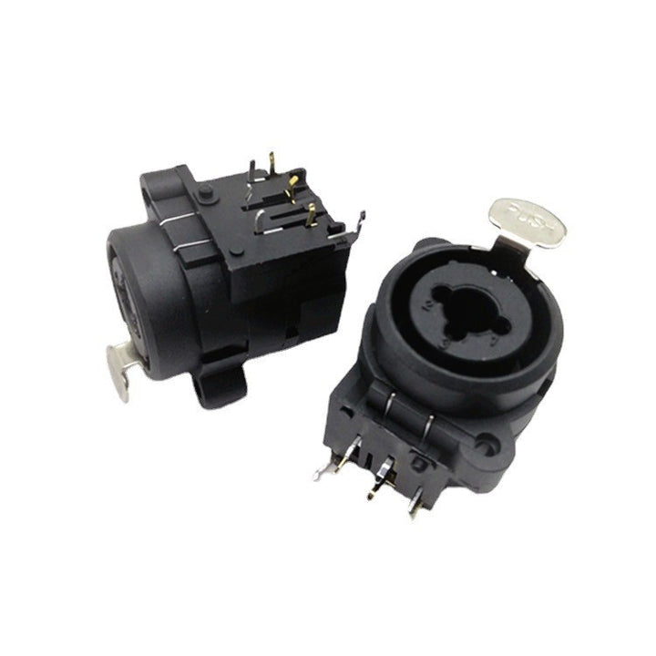 Multifunctional combination socket, microphone, XLR (CT) connector, microphone socket, 90 degree bent foot
