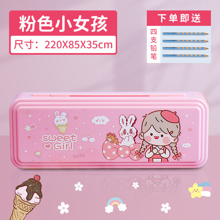 Multifunctional compass pencil case Primary school student stationery box wholesale Children's cartoon cute astronaut plastic pencil case