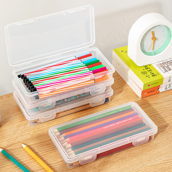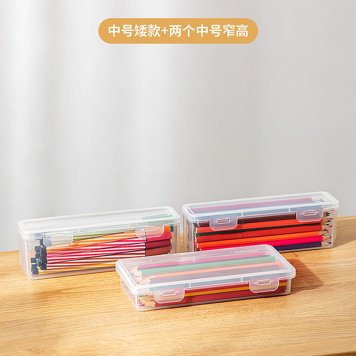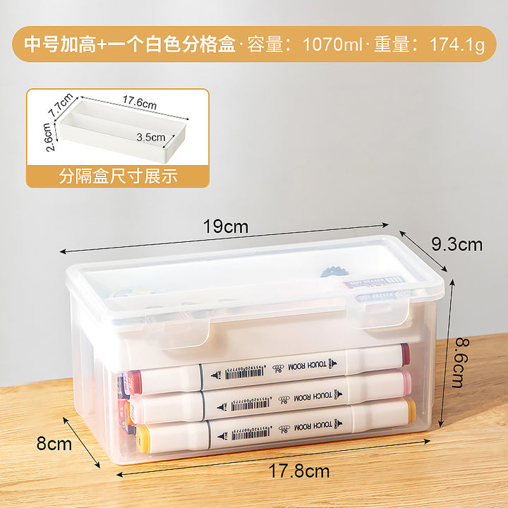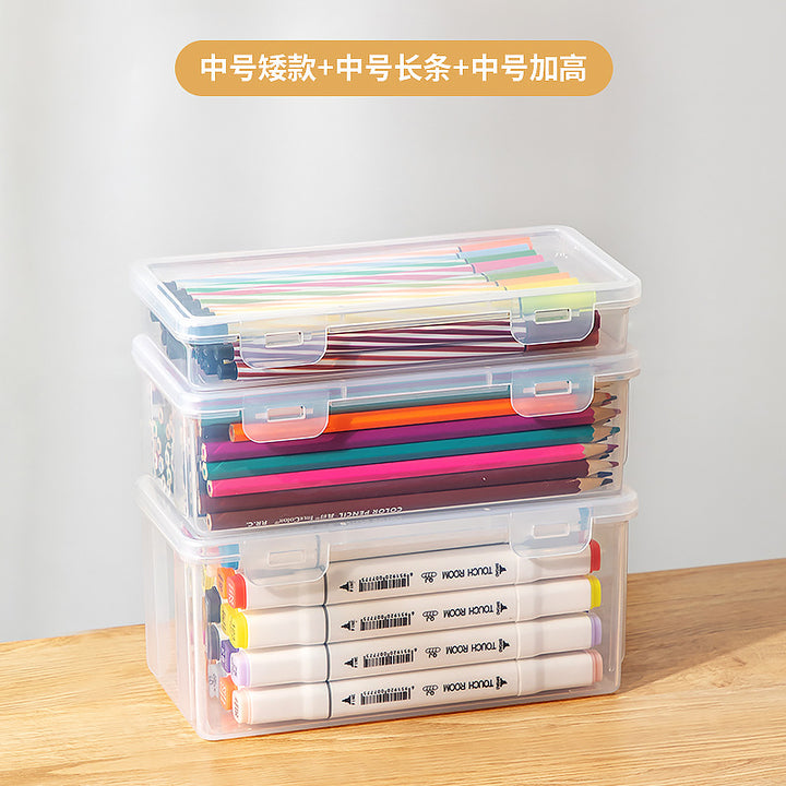 Multifunctional desk storage box Transparent desktop marker Stationery storage box Pencil plastic storage box with lid