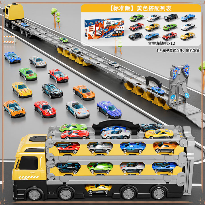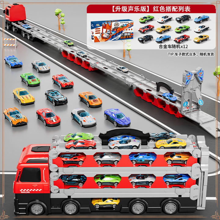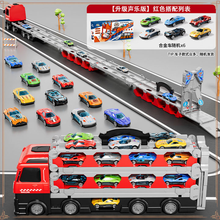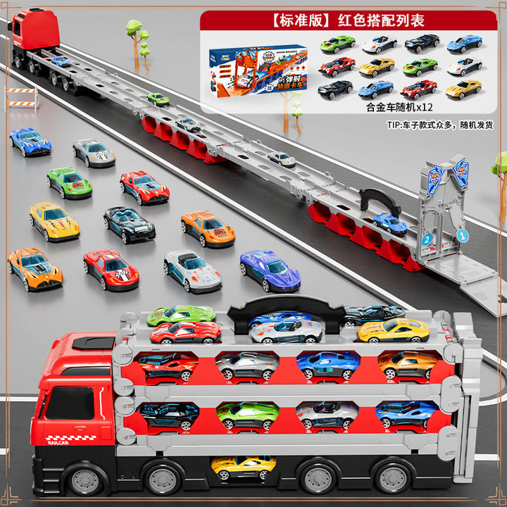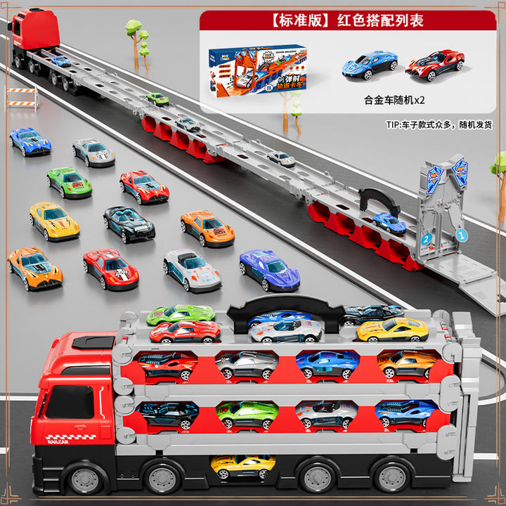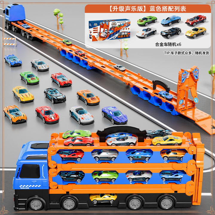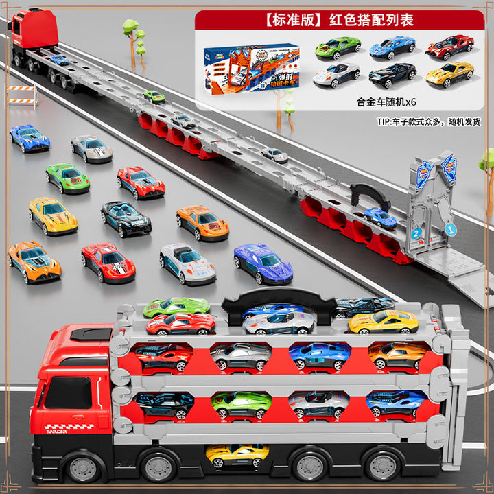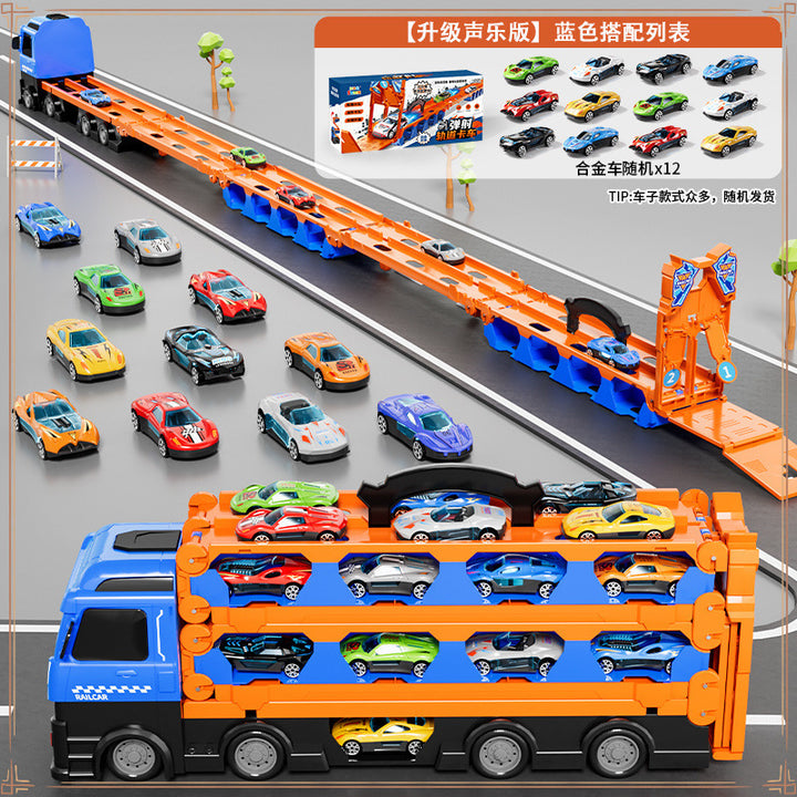 Multifunctional elastic folding track ejection container truck storage large truck children flatbed trailer car toy car