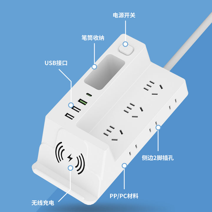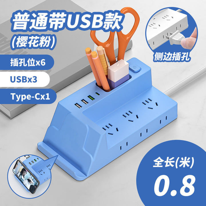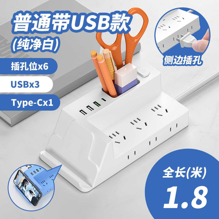 Multifunctional fast charging plug-in board, smart usb with long cable plug-in household office socket new national standard power strip