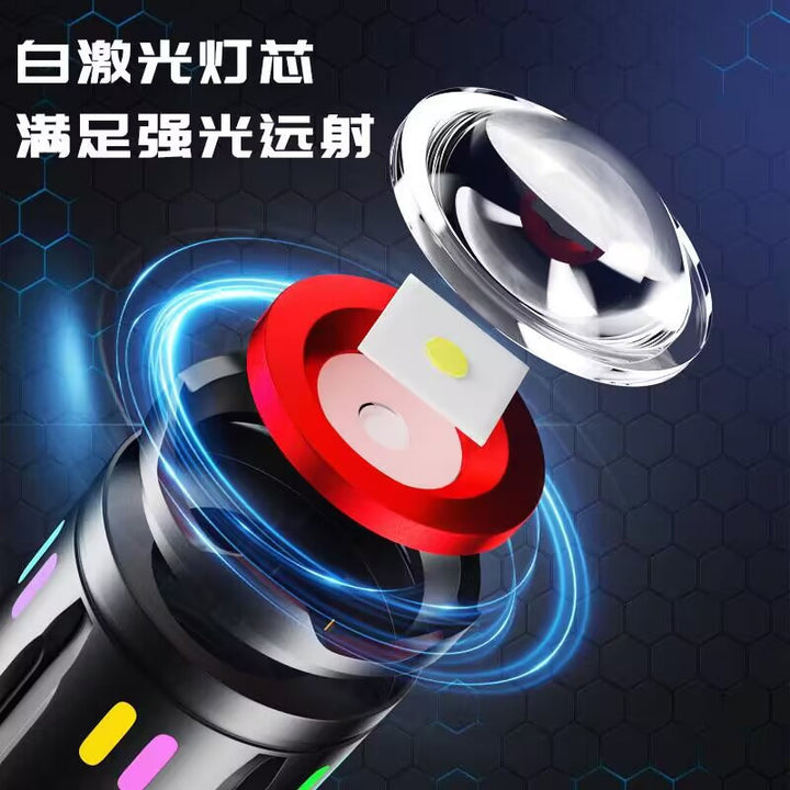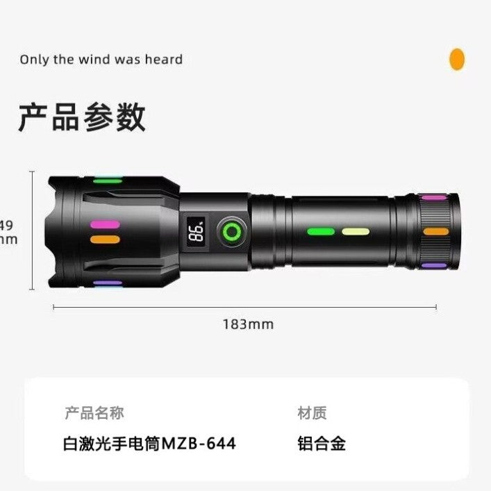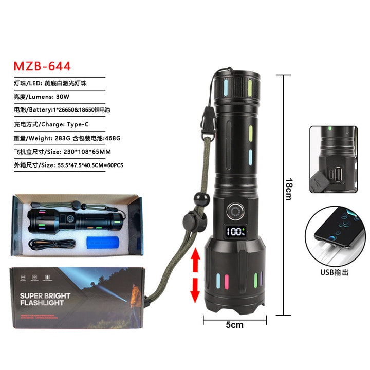 Multifunctional flashlight lithium battery long battery life fluorescent bar digital display Type-C charging strong light zoom white laser flashlight