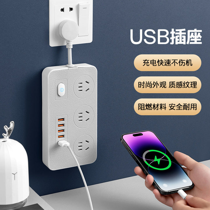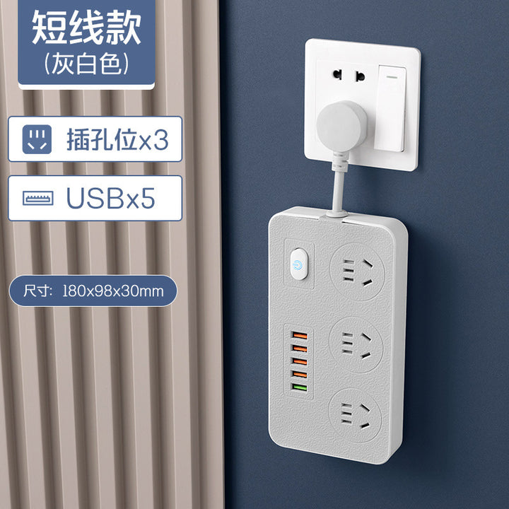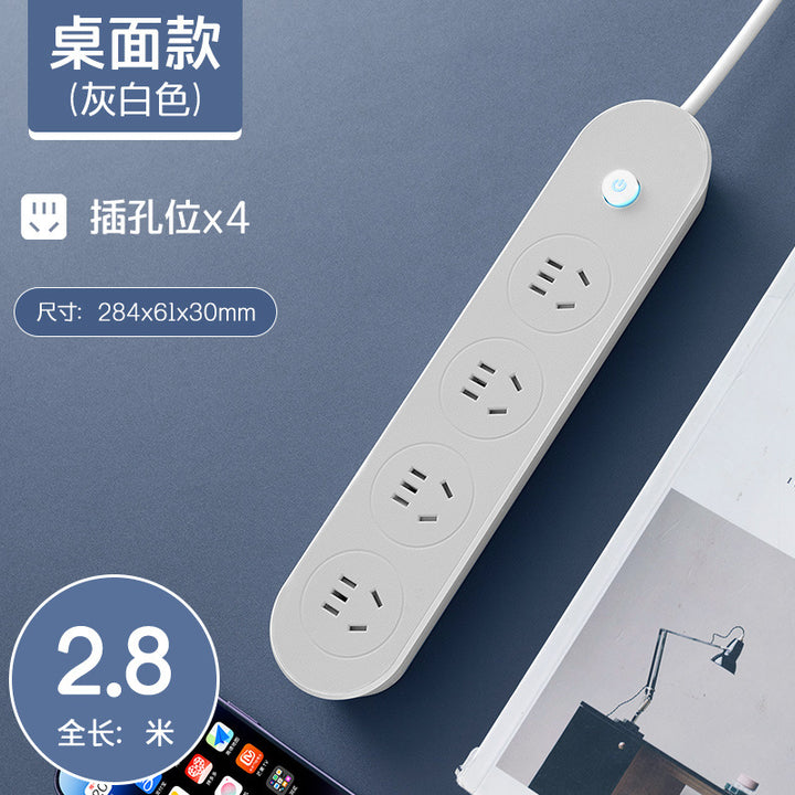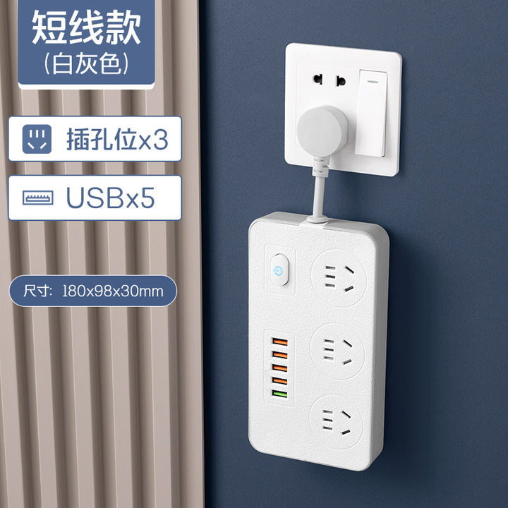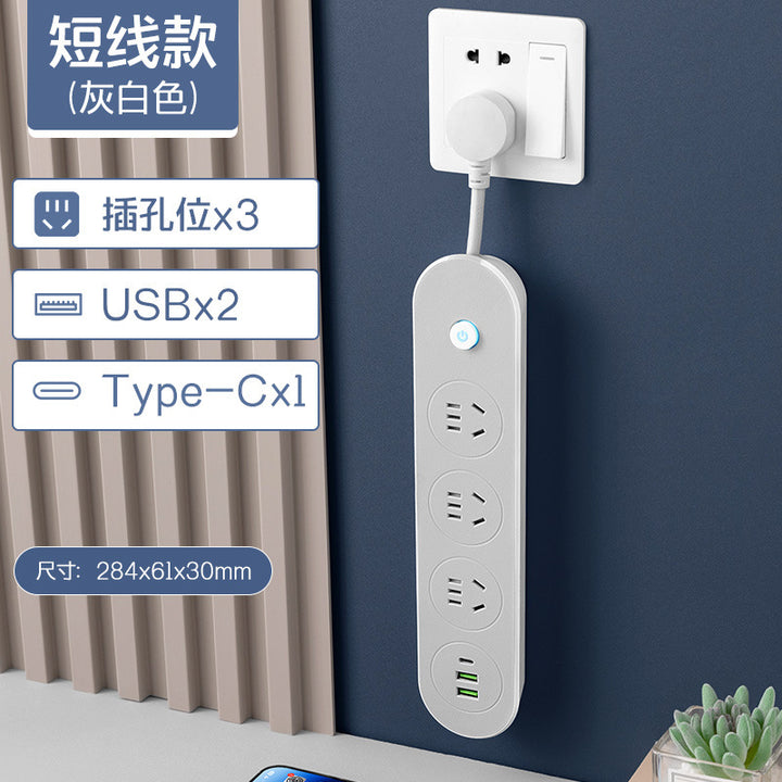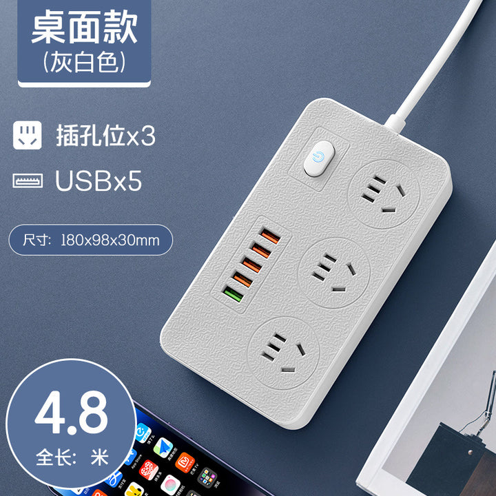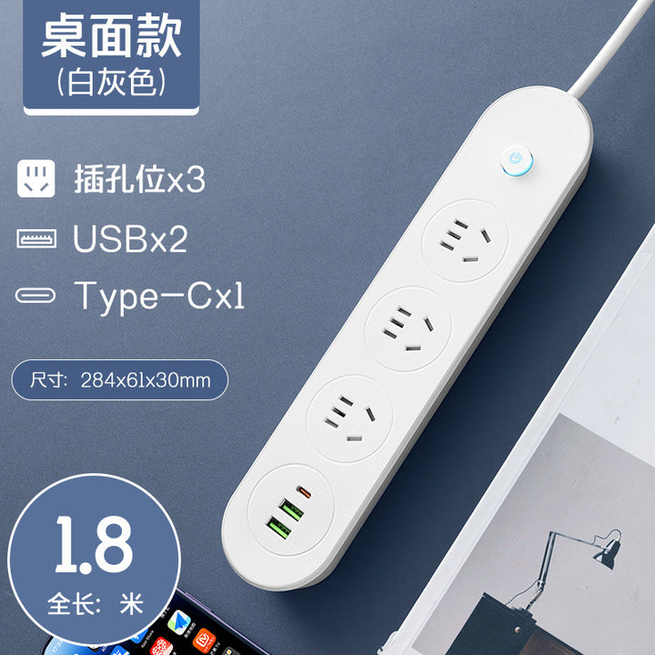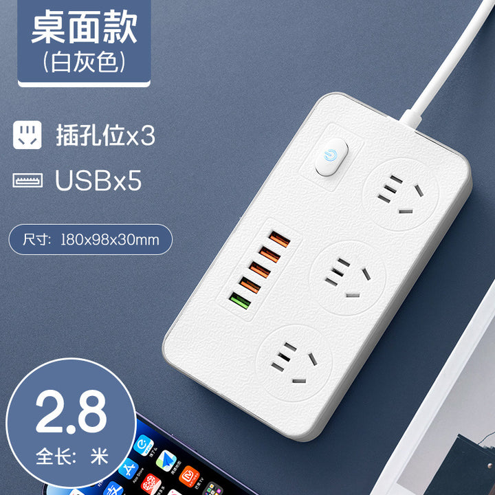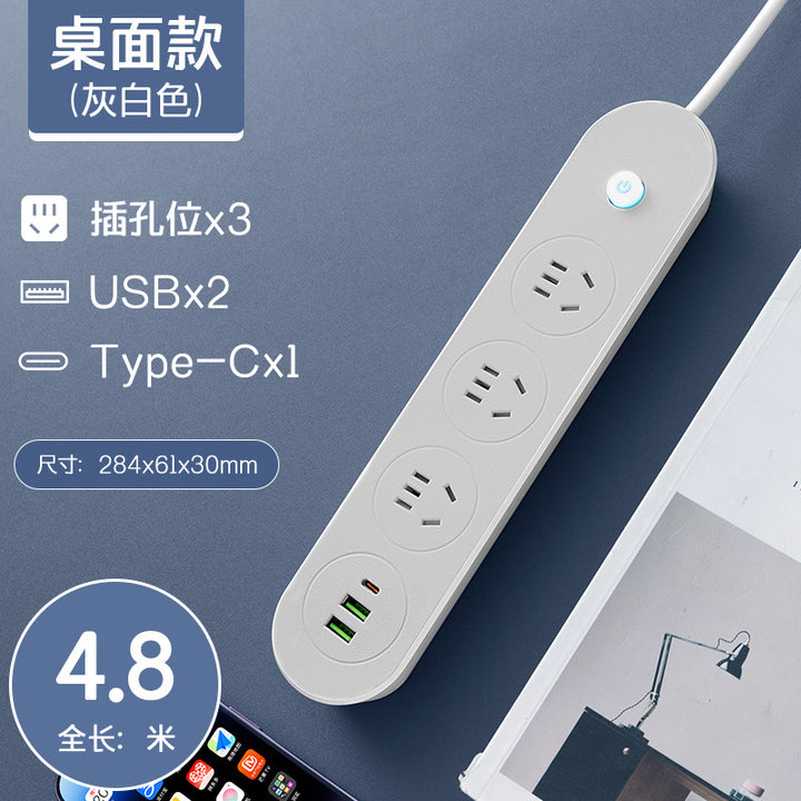 Multifunctional gray and white intelligent socket with cable USB porous plug-in board socket home office desktop power strip wholesale
