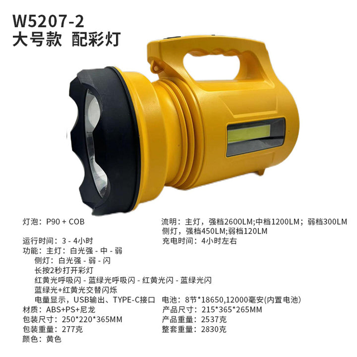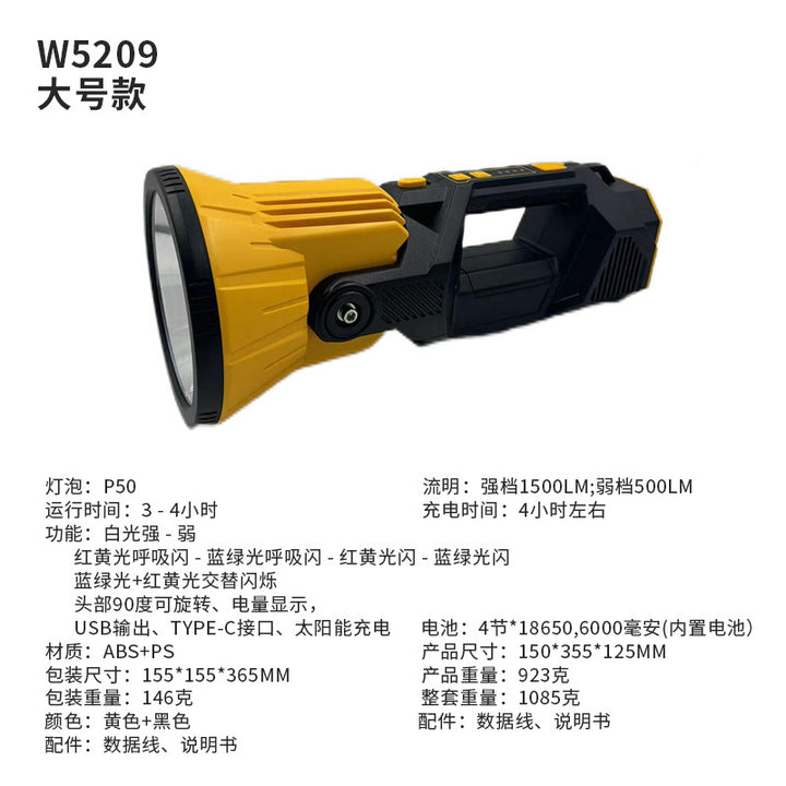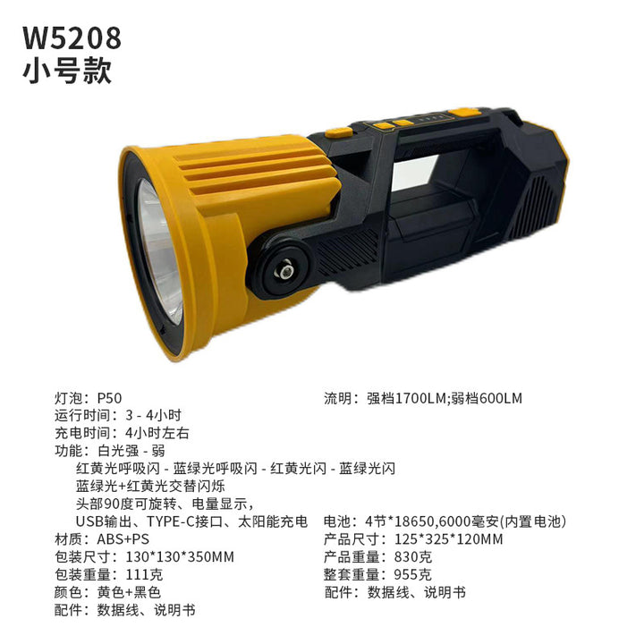 Multifunctional high-brightness portable light with electric display lights Multi-gear searchlight Outdoor high-brightness portable flashlight