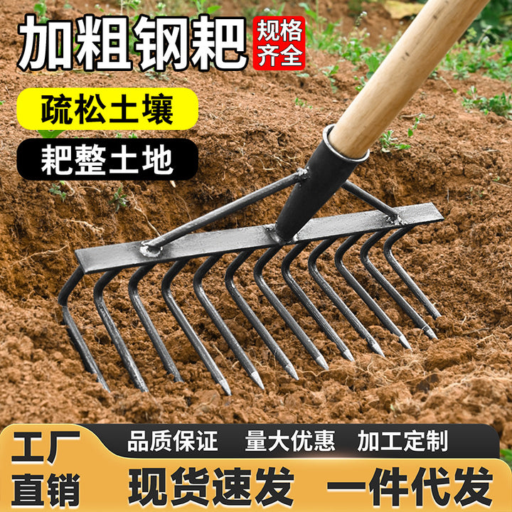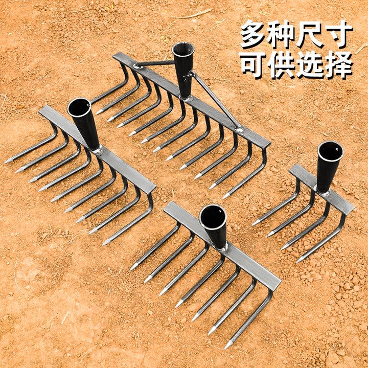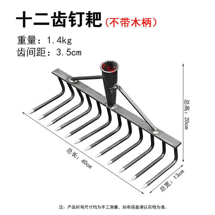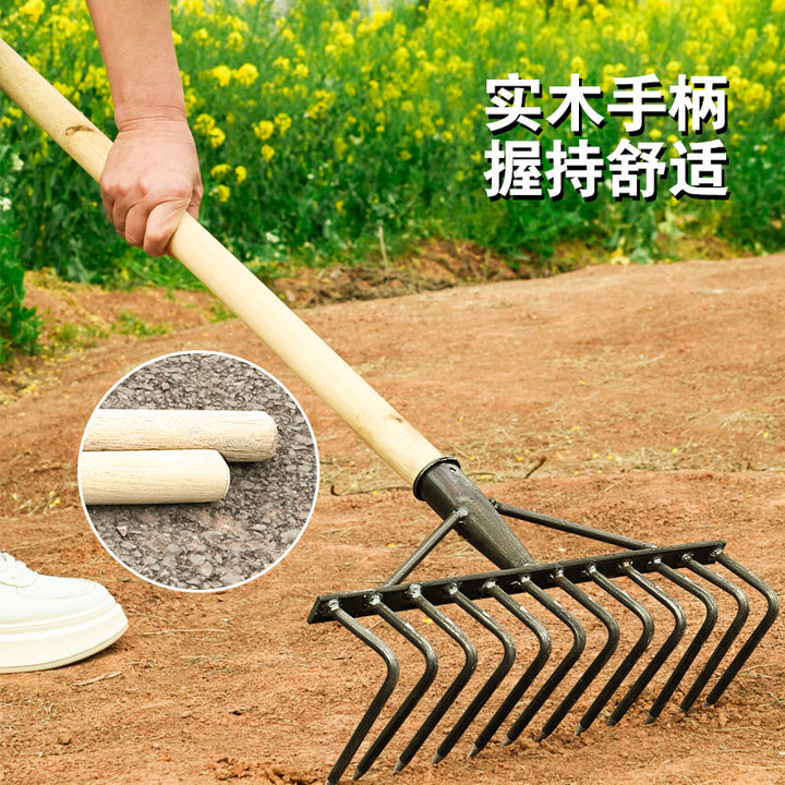 Multifunctional manganese steel agricultural rake, thickened steel rake, multi-tooth iron rake, turning the ground, raking grass, loosening soil, f...
