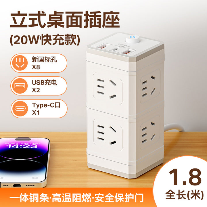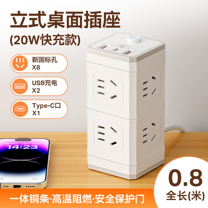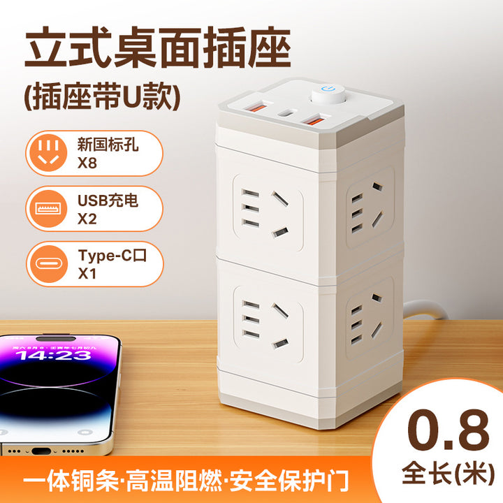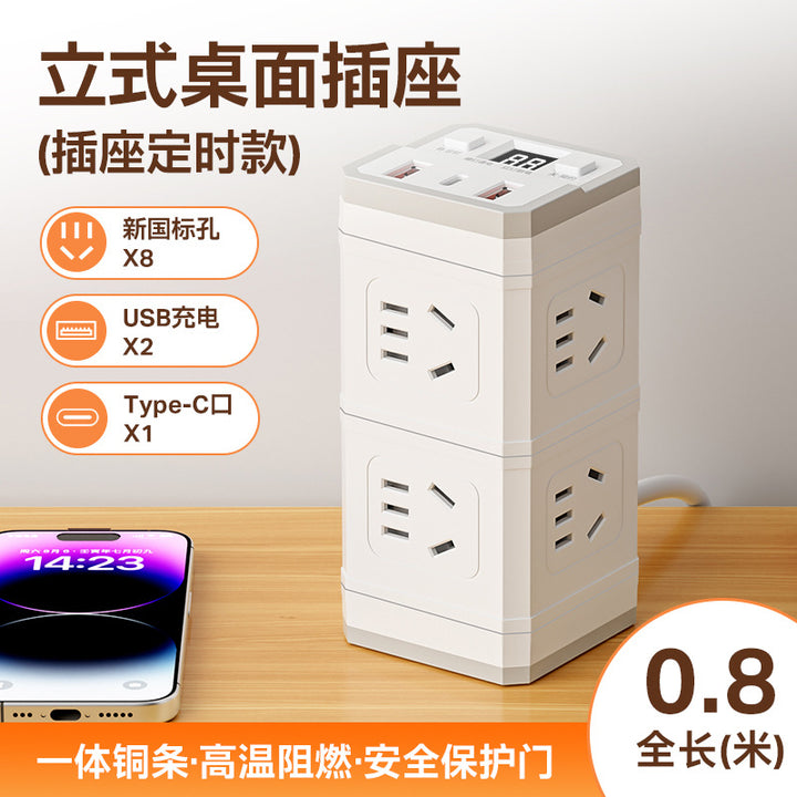 Multifunctional office with cable vertical socket with USB fast charging socket can be timed intelligent power strip household drag board